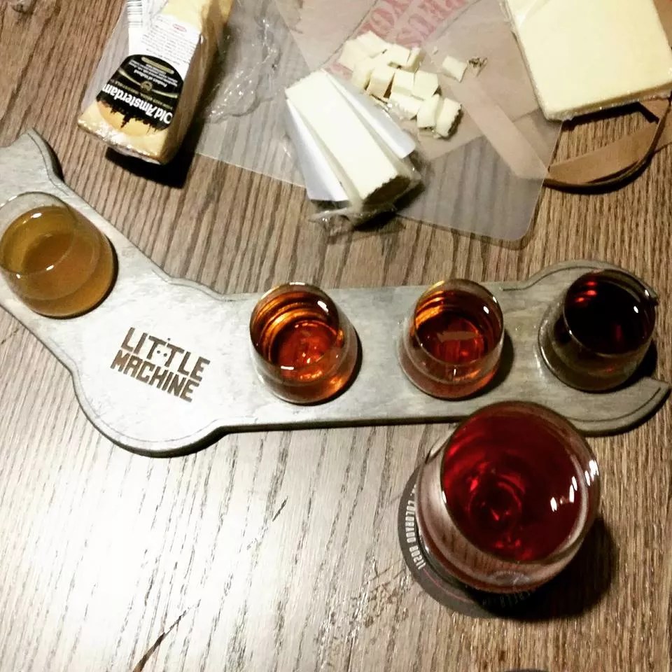 Little Machine built its theme on robots, and its logo features a mechanical-looking robot arm, which is how the brewery serves its tasters as well.