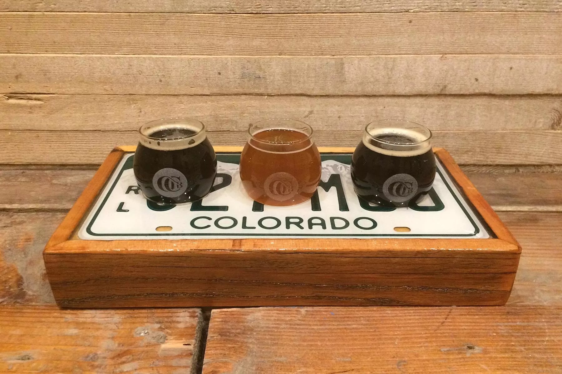 There’s nothing more emblematic of Colorado than the state’s green and white license plates, and Mockery Brewing goes native with its taster trays, which are made from the plates.