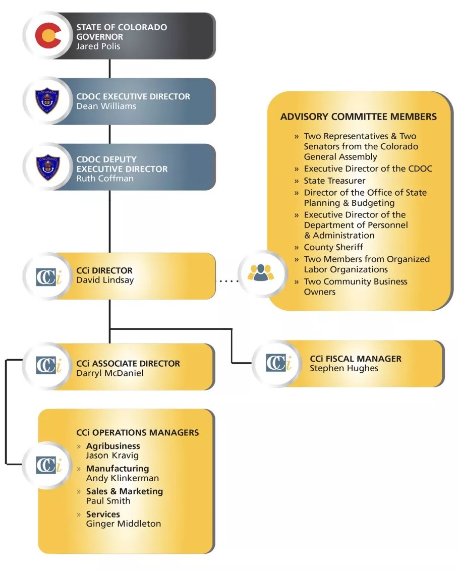 Colorado Correctional Industries’ annual report includes its org chart.