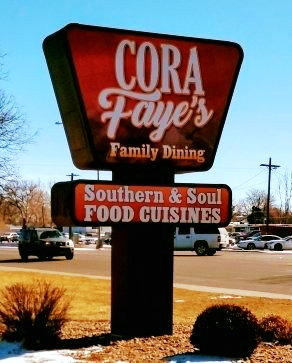 The new sign at a former East Colfax Avenue Village Inn now reads Cora Faye’s.
