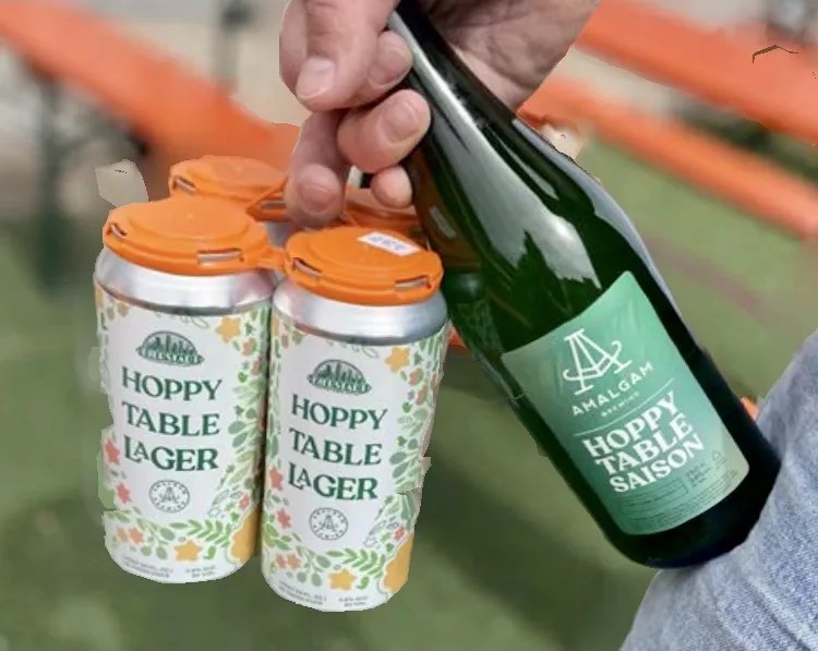 These two Bierstadt “collabierations” with Amalgam Brewing, a very small-batch brewery and blendery that doesn’t have a dedicated taproom, hit the menu board last Friday. Bierstadt’s Hoppy Table Lager is a 3.8 percent beer that was dry-hopped with Motueka and Grüngeist hops. Amalgam’s Hoppy Table Saison was dry-hopped with the same varietals. The beers are available in cans and bottles to go at Bierstadt.