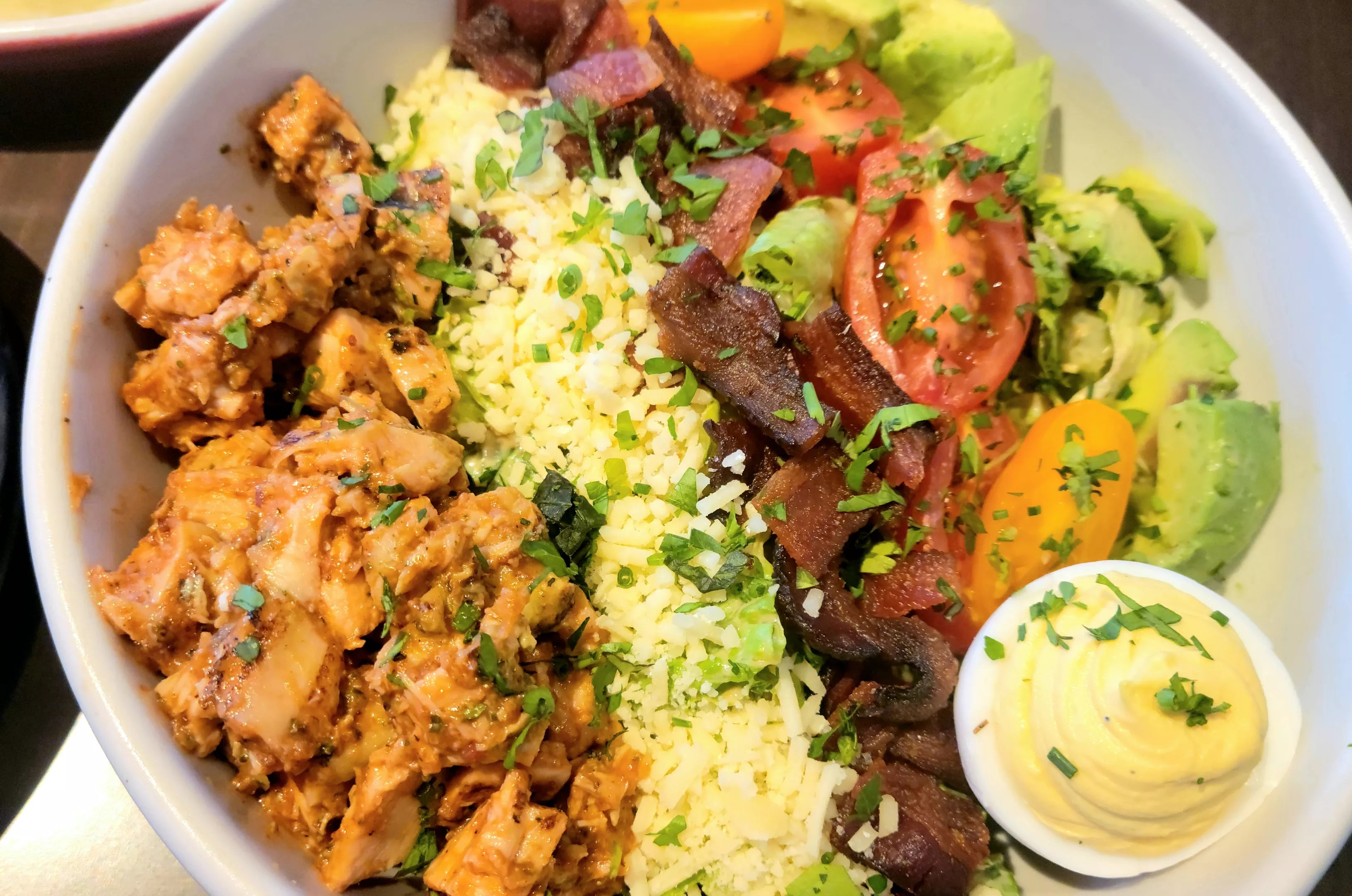The chopped chicken salad ($16.50) was supposed to be our healthy option. But while it was a salad, the hearty chunks of bacon, white cheddar, luscious deviled egg and bacon-barbecue ranch dressing elevated it to the comfort-food category. Equally satisfying is the fried chicken, which, when ordered off the brunch menu (available 10 a.m. to 3 p.m. Saturday and Sunday), comes as a fillet over two biscuits with a spicy, umami-filled gravy flavored with Old Bay seasoning.