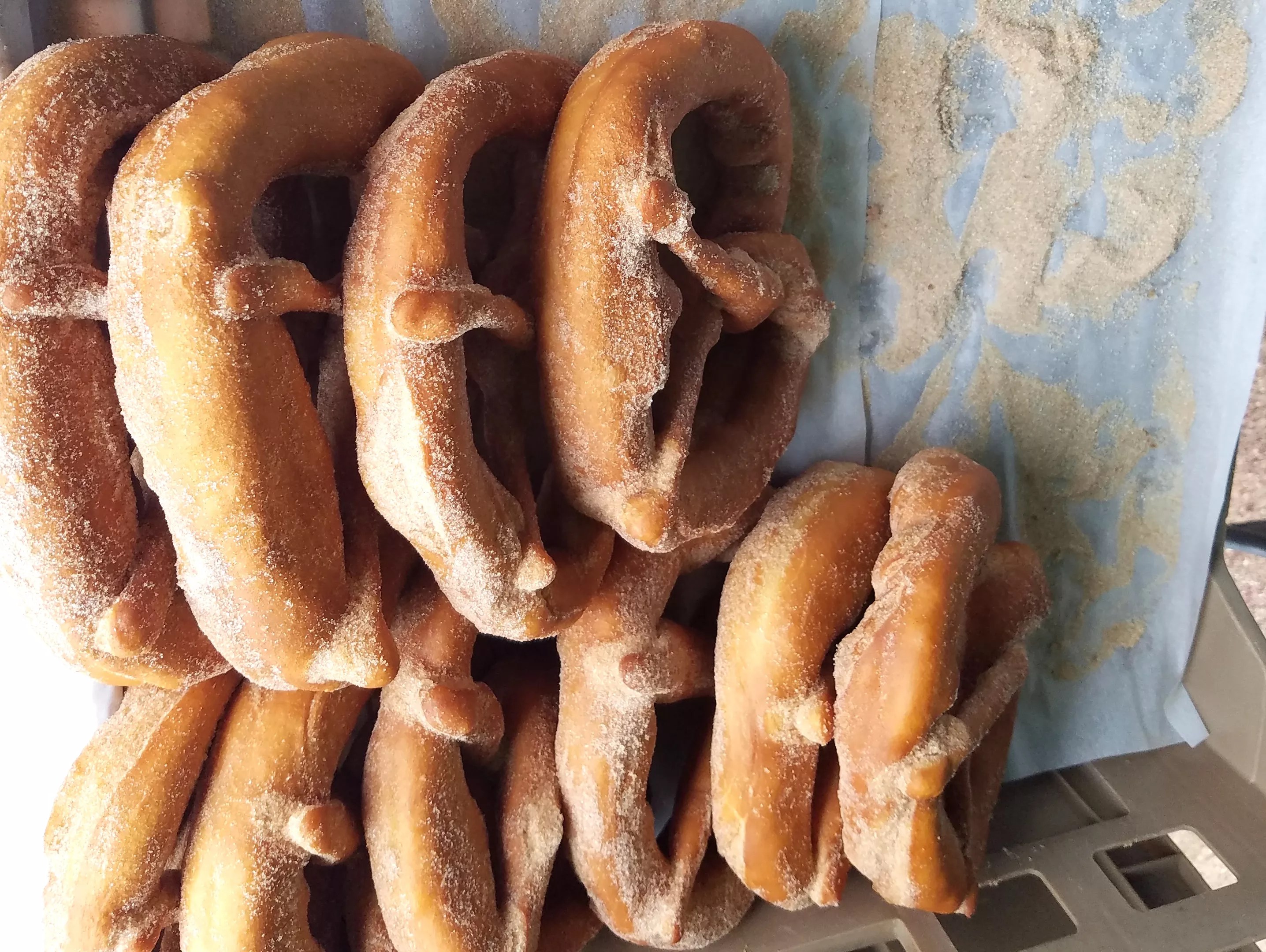 In the market we sampled pierogi, dips, tamales and pretzels. I also got a stunning pot of white and red chrysanthemums from Blue Ribbon Farms for a measly $12. These beautiful blossoms are also in season right now. This farmers’ market visit involved a hungry toddler who demanded one of the giant cinnamon pretzels from Styria Bakery. Linnea Covington