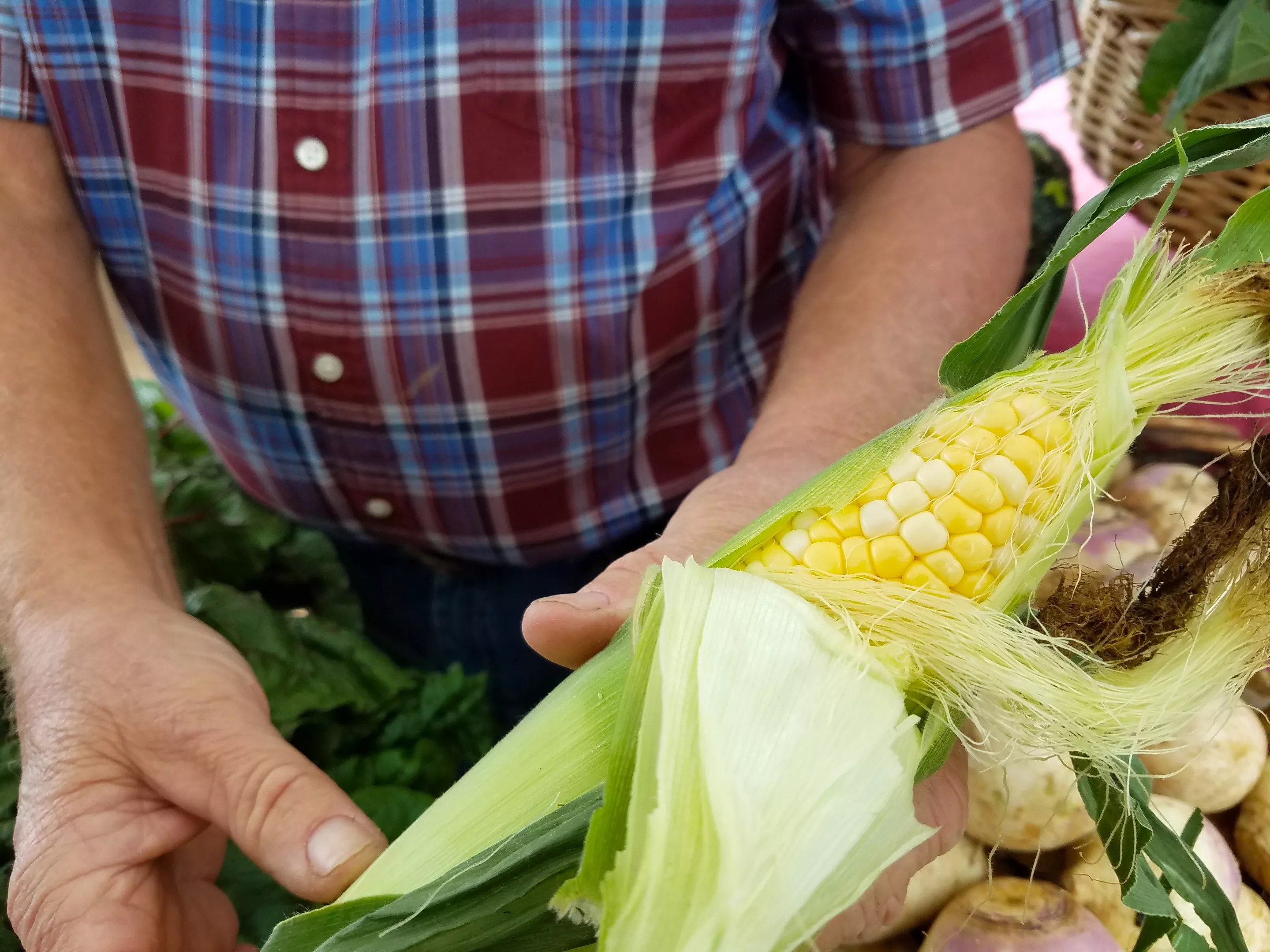 My dinner goal included grilled cheese with chiles, summer succotash with pesto, and a pot of tomato sauce, which wasn’t for dinner that night but would be enjoyed during Sunday supper. Over the course of an hour I picked up sweet corn from Full Circle Organic Farms; spaghetti squash and basil from Aspen Moon Farm; Honeycrisp apples from Masonville Orchards; Chesnok Red garlic at WeeBee Farms; Organilicious‘s arugula pesto; Buttercup cheese from Haystack Mountain Creamery; green beans from Emerald Acres; filone bread from Izzio Artisan Bakery; Big Jim green chiles from Pope Farms Produce; and tomatoes from Ollin Farms. Full Circle Organic Farms in Longmont picks its sweet corn in the morning before bringing it to the market. It’s so good, you can eat it raw right off the cob. Best part, it’s only .50 for three ears. Linnea Covington