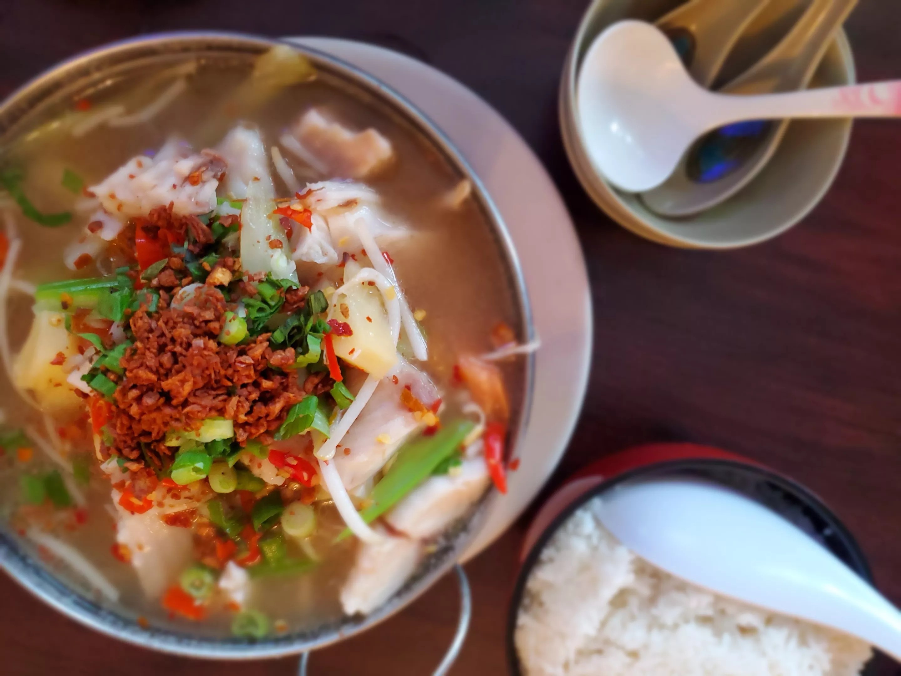Canh chua, Vietnamese sweet and sour seafood soup.