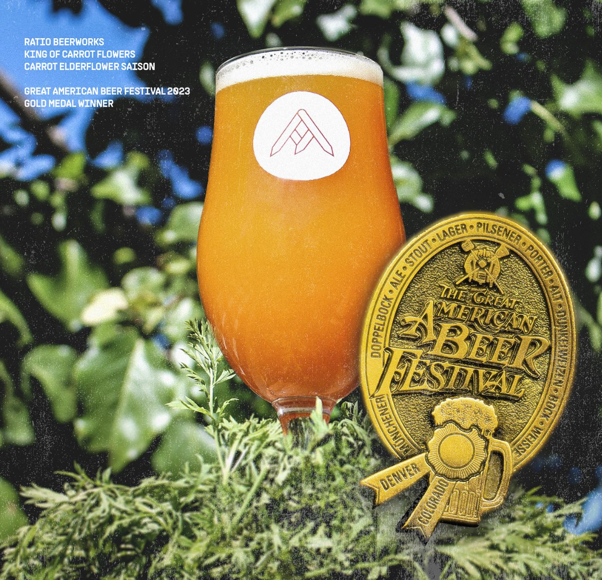 Our beer of the week is a local favorite and 2023 GABF gold medal winner—King of Carrot Flowers from Ratio Beerworks.