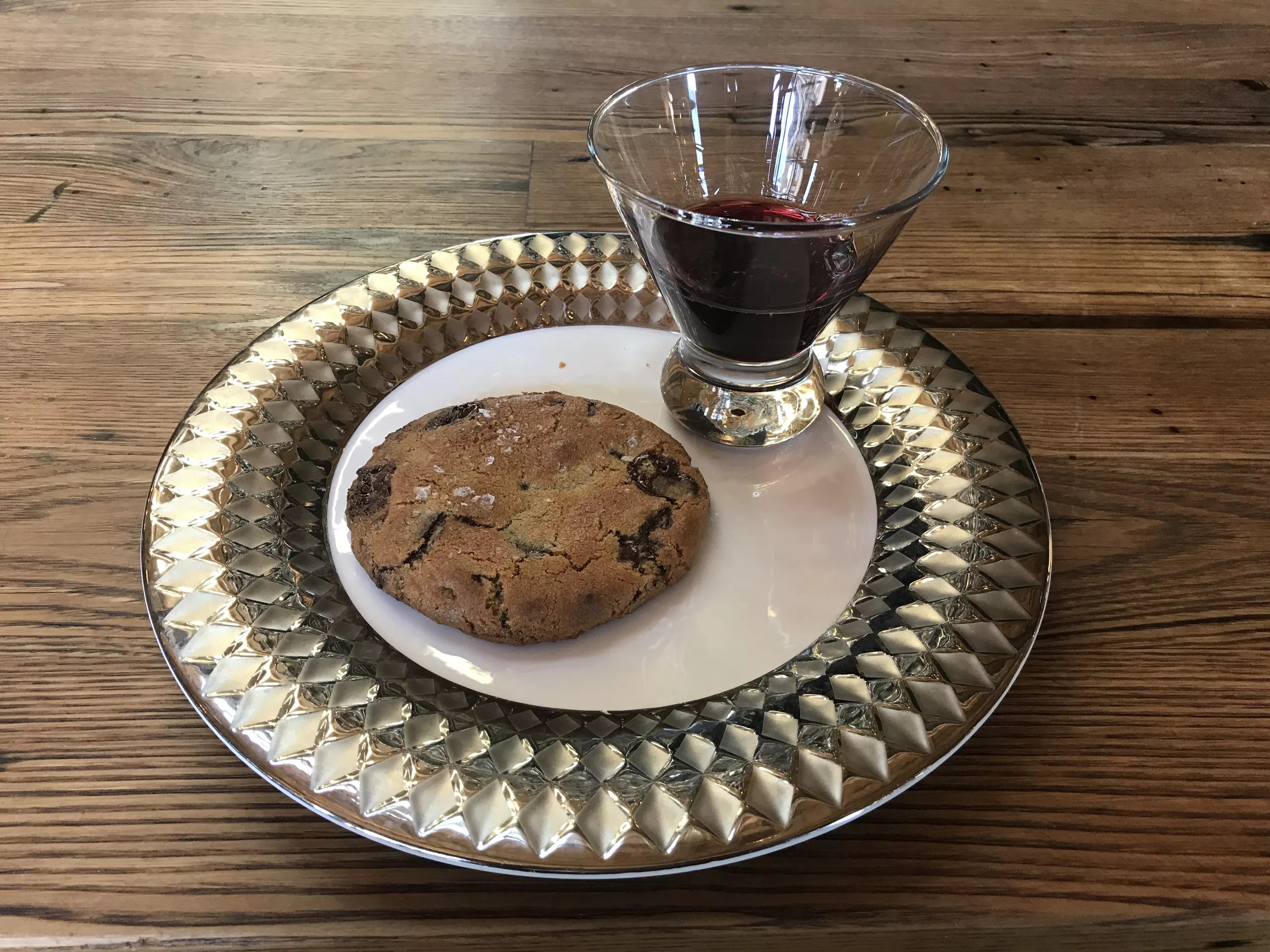 Dessert comes in the form of a warm chocolate chip cookie – paired with a tasting-sized glass of merlot. Dunking is recommended, and it’s a great combo, especially since the cookie comes with a light sprinkle of sea salt. If you’re like me, you’ll dunk first (it’s messy but so worth it), finish your cookie, then down the remaining wine – crumbs and all.
