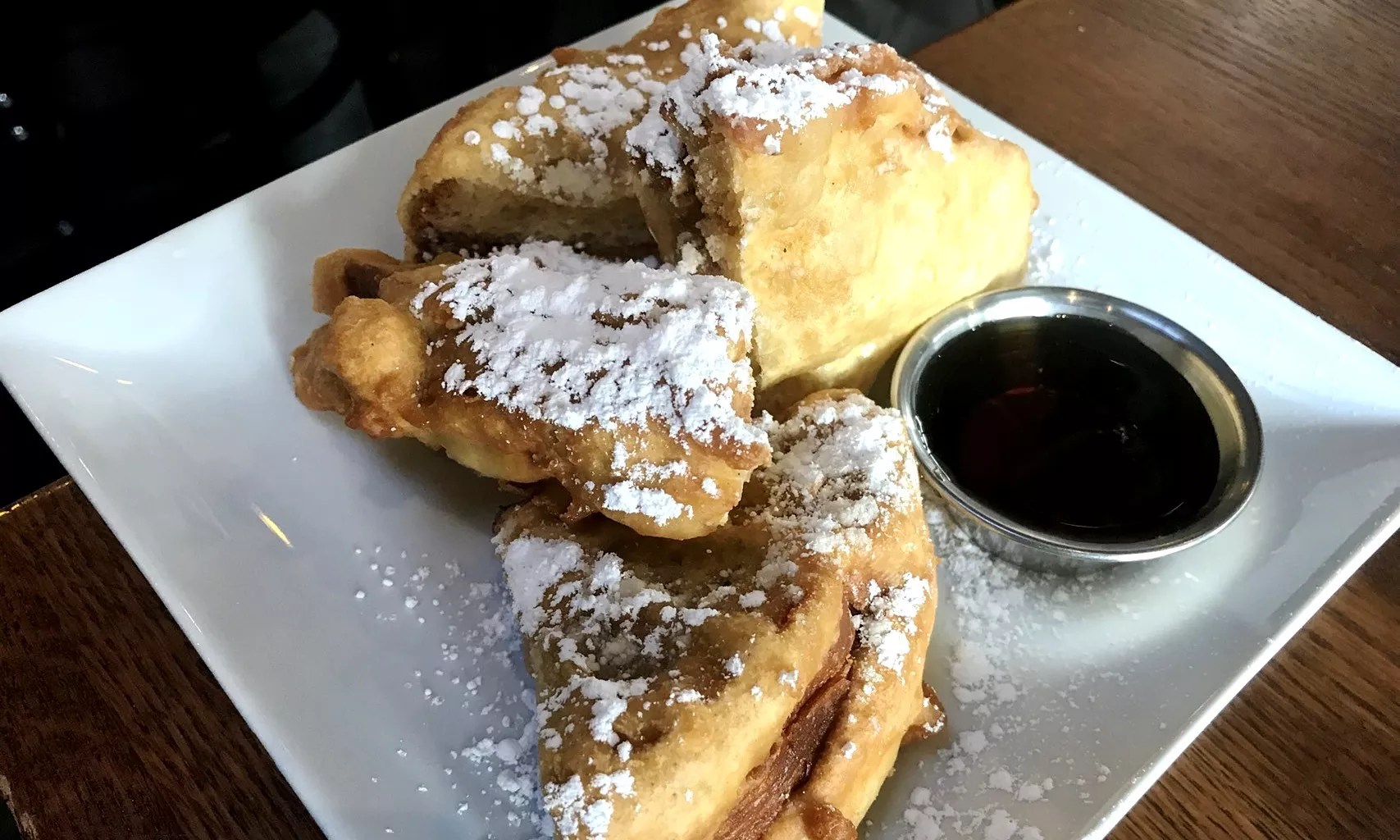 The birthday cake fritters have recently been reconfigured to turn sweet cake into waffles rather than deep-fried fritters, but the dish still brings birthday cake to a higher plane of existence. The dense waffle quarters are decorated with powdered sugar, icing and rainbow sprinkles – and you don’t even have to lie about your birthday to order it.