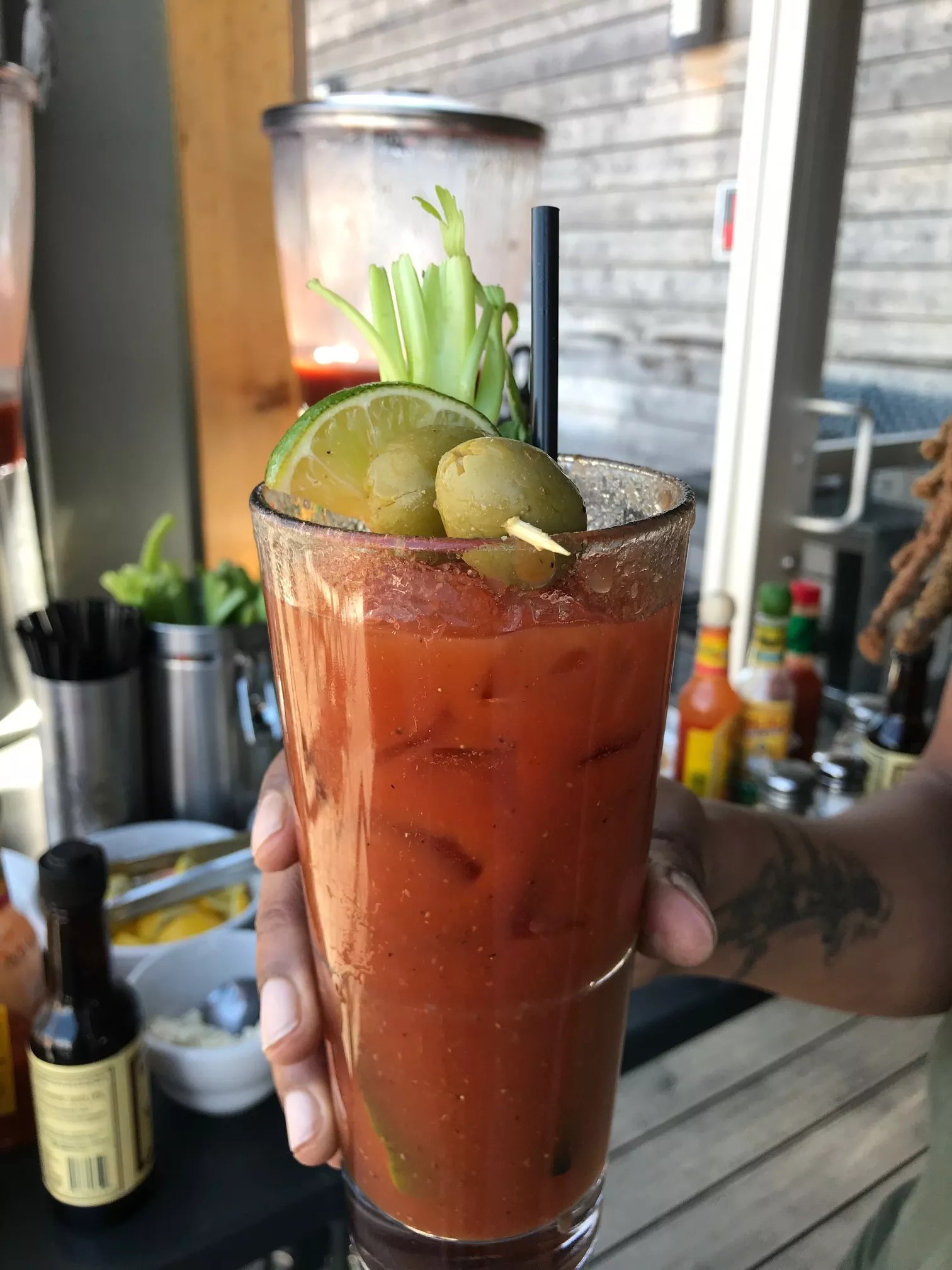 Stock up on salty and spicy flavors at the self-serve Bloody Mary bar.
