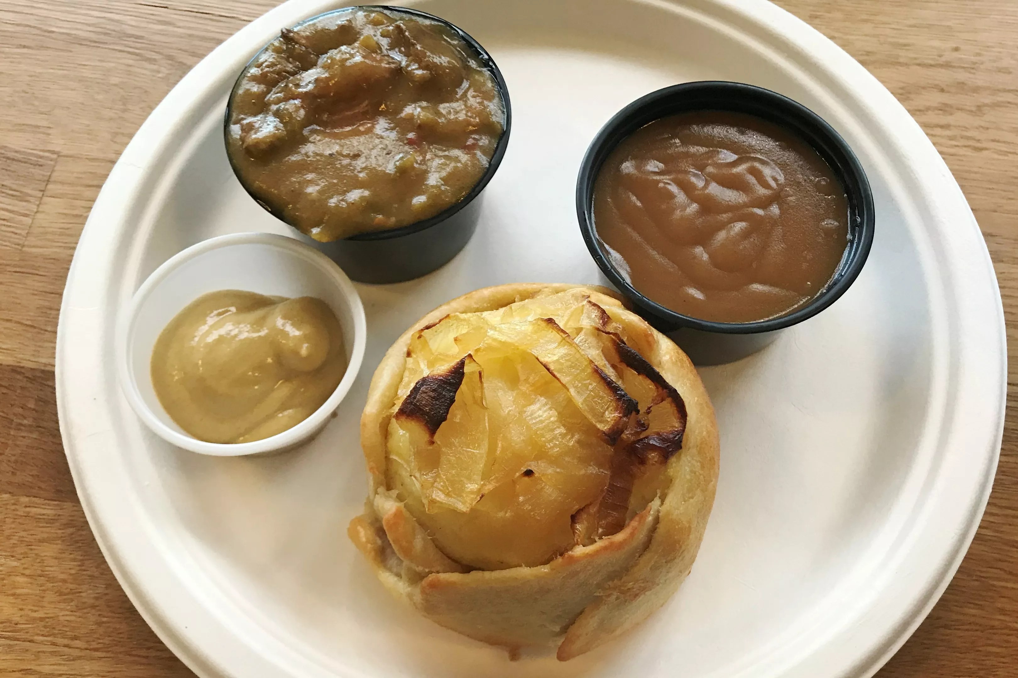 The knishes stick closer to the old-world standard, with a couple of modern twists. The Tradish Knish is simply creamy mashed potato piped into a crunchy pastry and topped with caramelized onions. If you’re craving meat, try the brisket or corned beef knish; with either one, Guinness gravy, green chile and spicy brown mustard are served on the side.