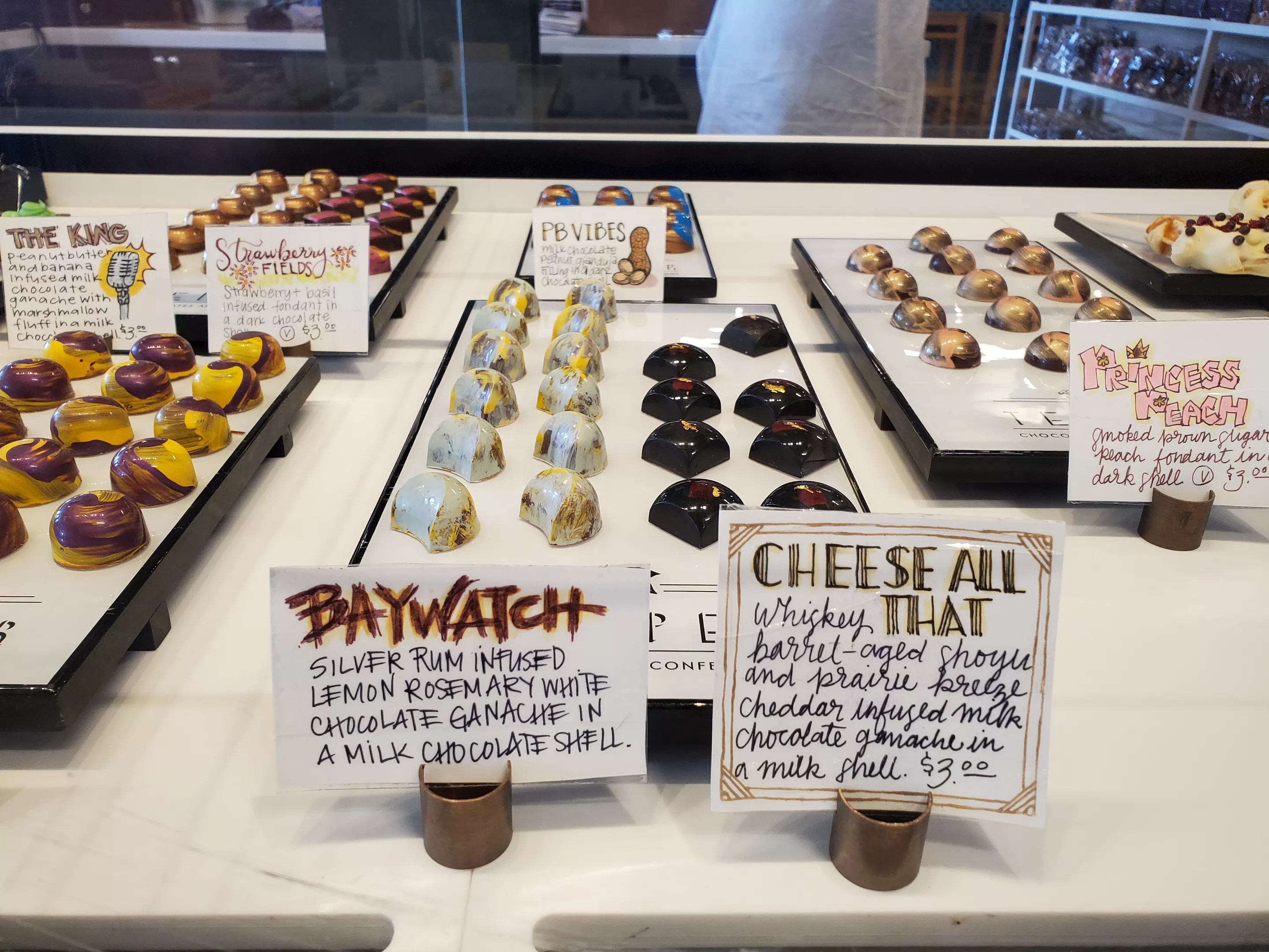 While visiting the new Denver Central Market concept Lunchboxx, a stop at Temper Chocolates for dessert is a must. The colorful bonbons are nearly too pretty to eat — but you will, because they come in some pretty fun flavor combinations. The current staff fave: Cheese All That, a milk chocolate shell filled with milk chocolate ganache infused with whiskey-barrel-aged shoyu and Prairie Breeze cheddar. The savory, umami notes with the creamy chocolate create a total treat.