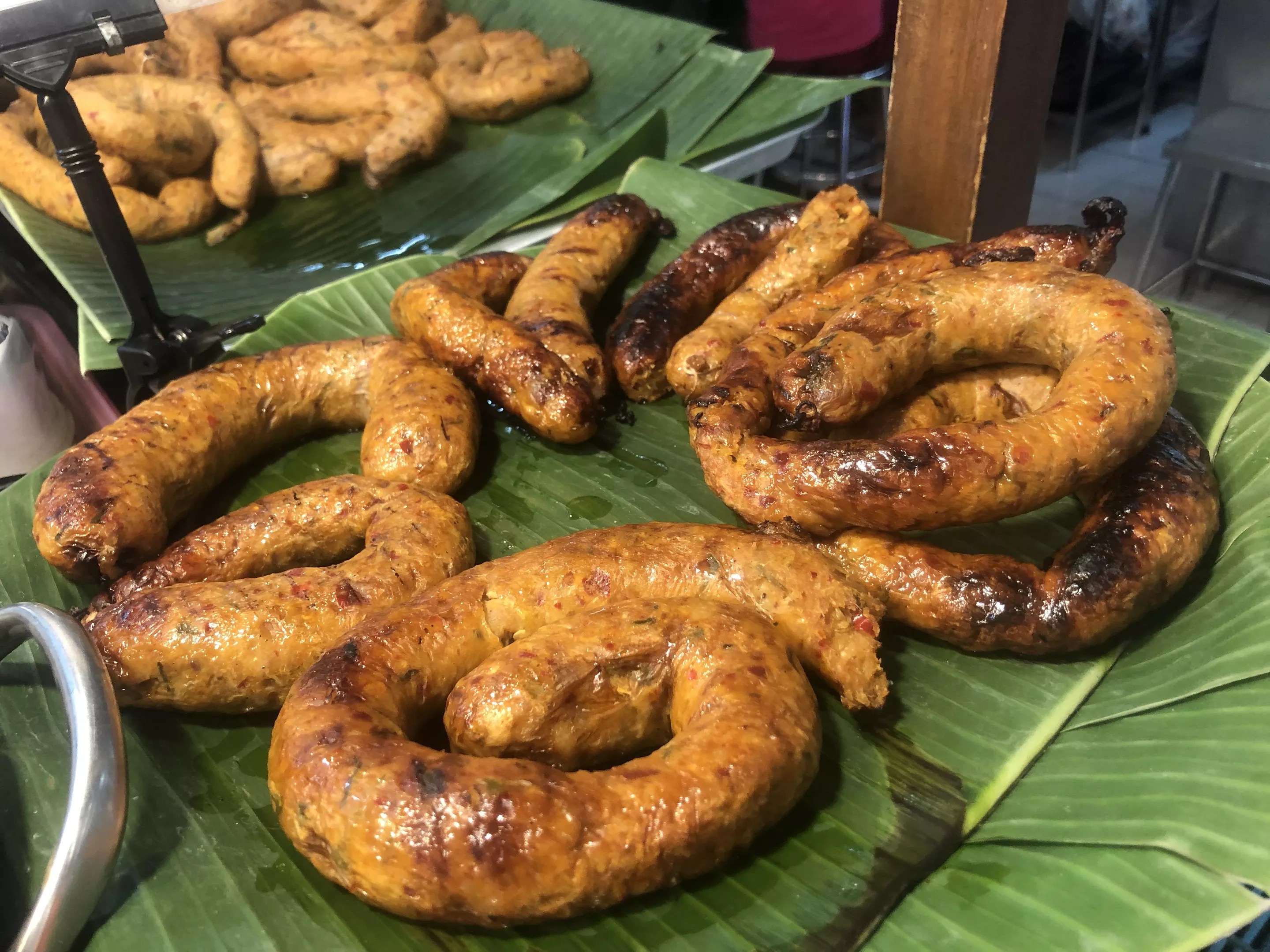 Khanom Krok Links of Sai Ua, grilled to perfection. Ben Whelan
