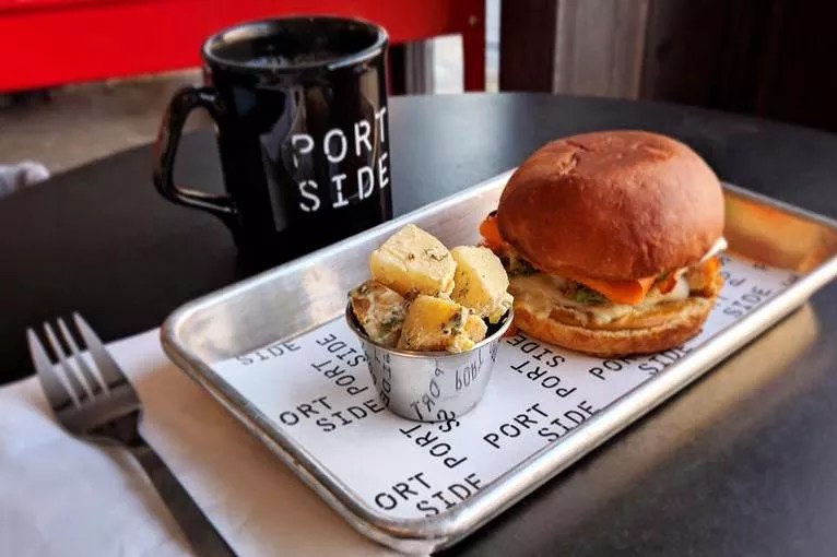 It’s easy to see how she became enamored; the sandwich comes stuffed with marinated, smashed chickpeas, tahini yogurt, avocado, sliced radishes and pickled onions, all folded in housemade sourdough flatbread, which adds a nice tang.