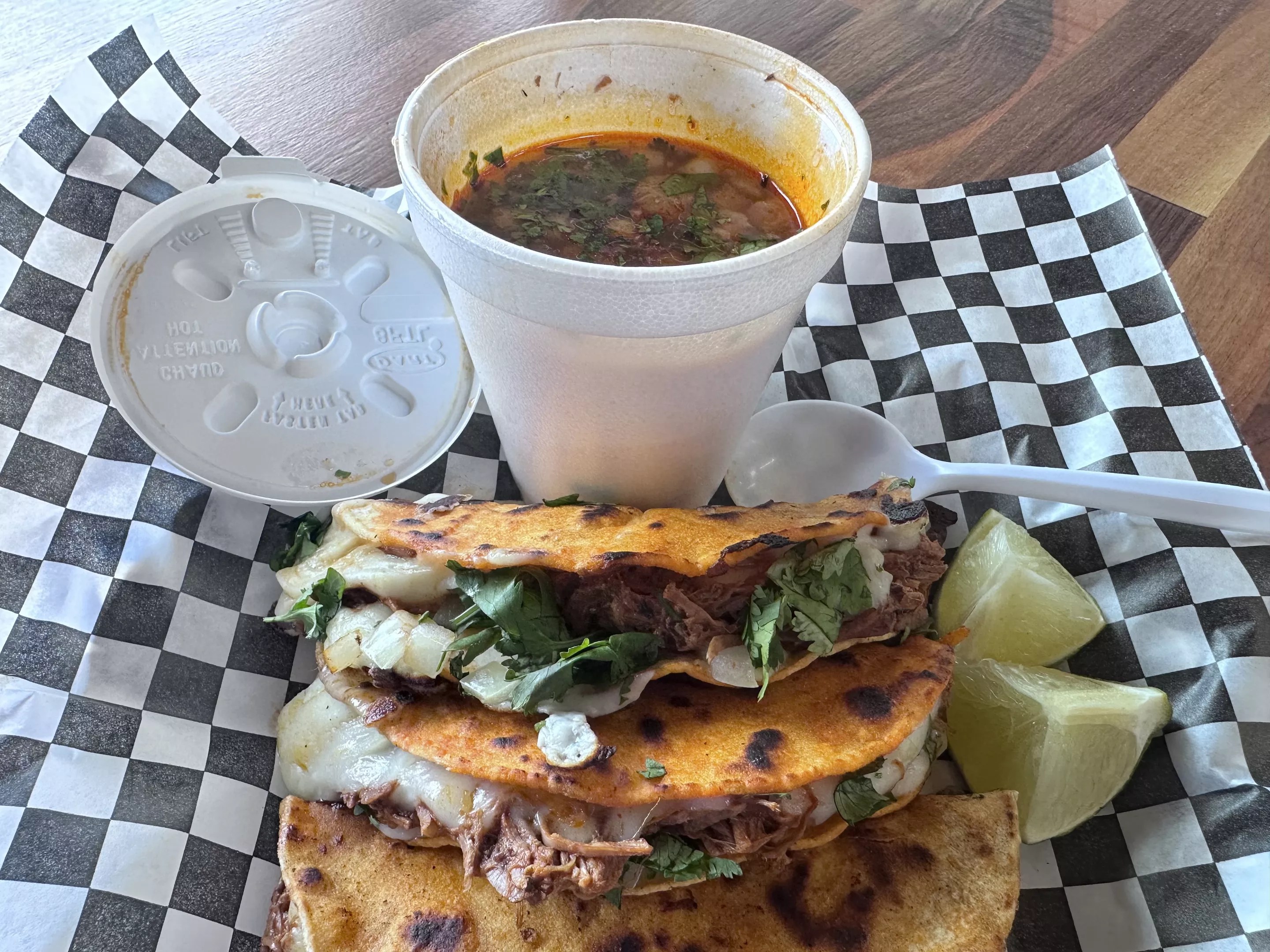 While the name honors her family, it also symbolizes the combination of authentic Mexican with more traditional American fare. The truck’s most popular dish is quesabirria tacos, which comes from her dad’s side of the family. “My cousin, who was very dear to me but we lost her through COVID, taught me how to make the most wonderful birria,” Sarabia explains. “There’s no skipping steps — it’s a fourteen-hour process. I use California chile rojo and ten different spices to make the broth. It all simmers together, and it’s wonderful.”