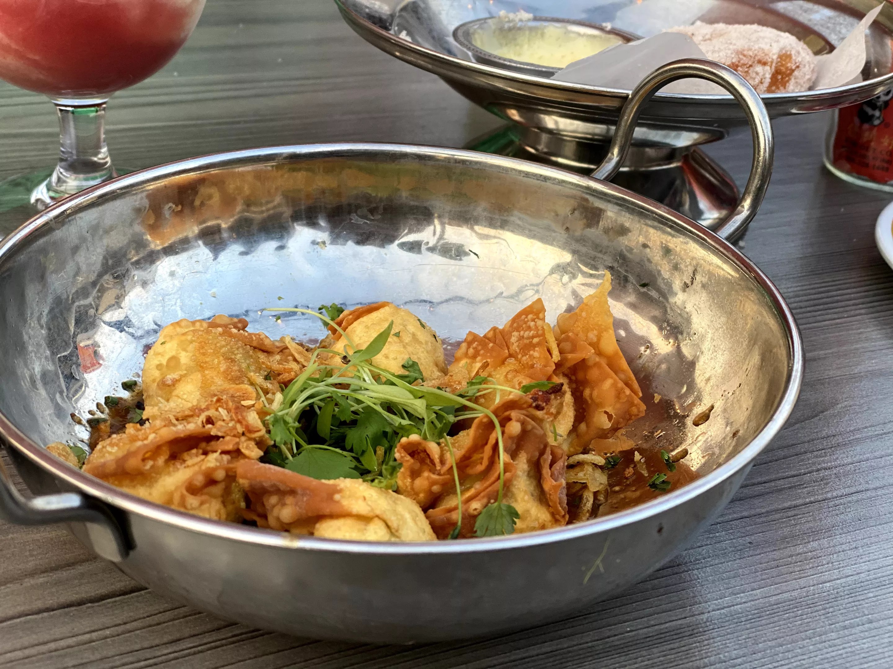 Because I knew my brother would absolutely demolish me in ping-pong, I lied and told him I couldn’t spend the $10 for an hour of play. Instead we worked on our happy hour bites, beginning with the Crazy Sichuan Shrimp Wontons, which came stuffed to plumpness with a crisp exterior and a toothsome seafood stuffing. While I was hoping for the buzzing numbness of Sichuan peppercorns, the only craziness I found was the punch in the face from what tasted like horseradish in the chili garlic sauce.