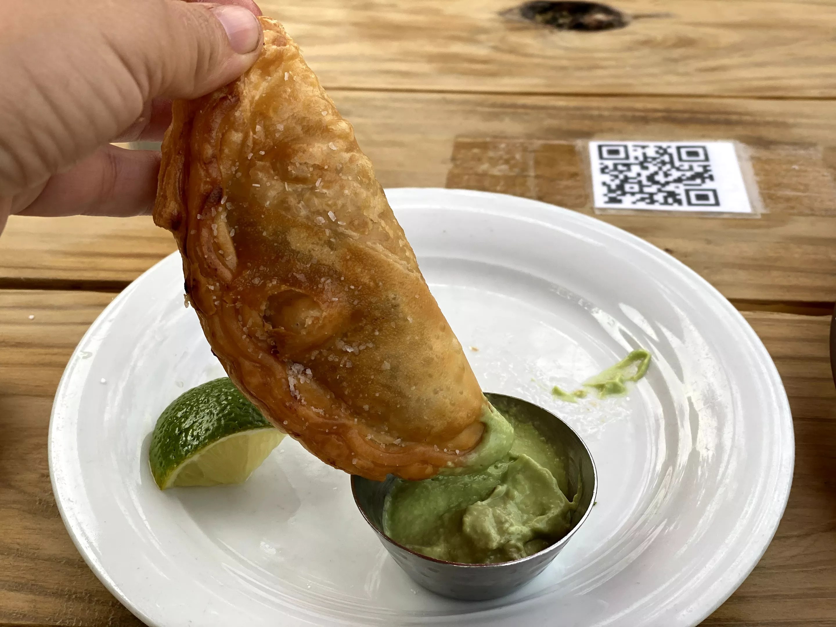 I know there’s chicken inside this empanada, but otherwise it’s a mystery.