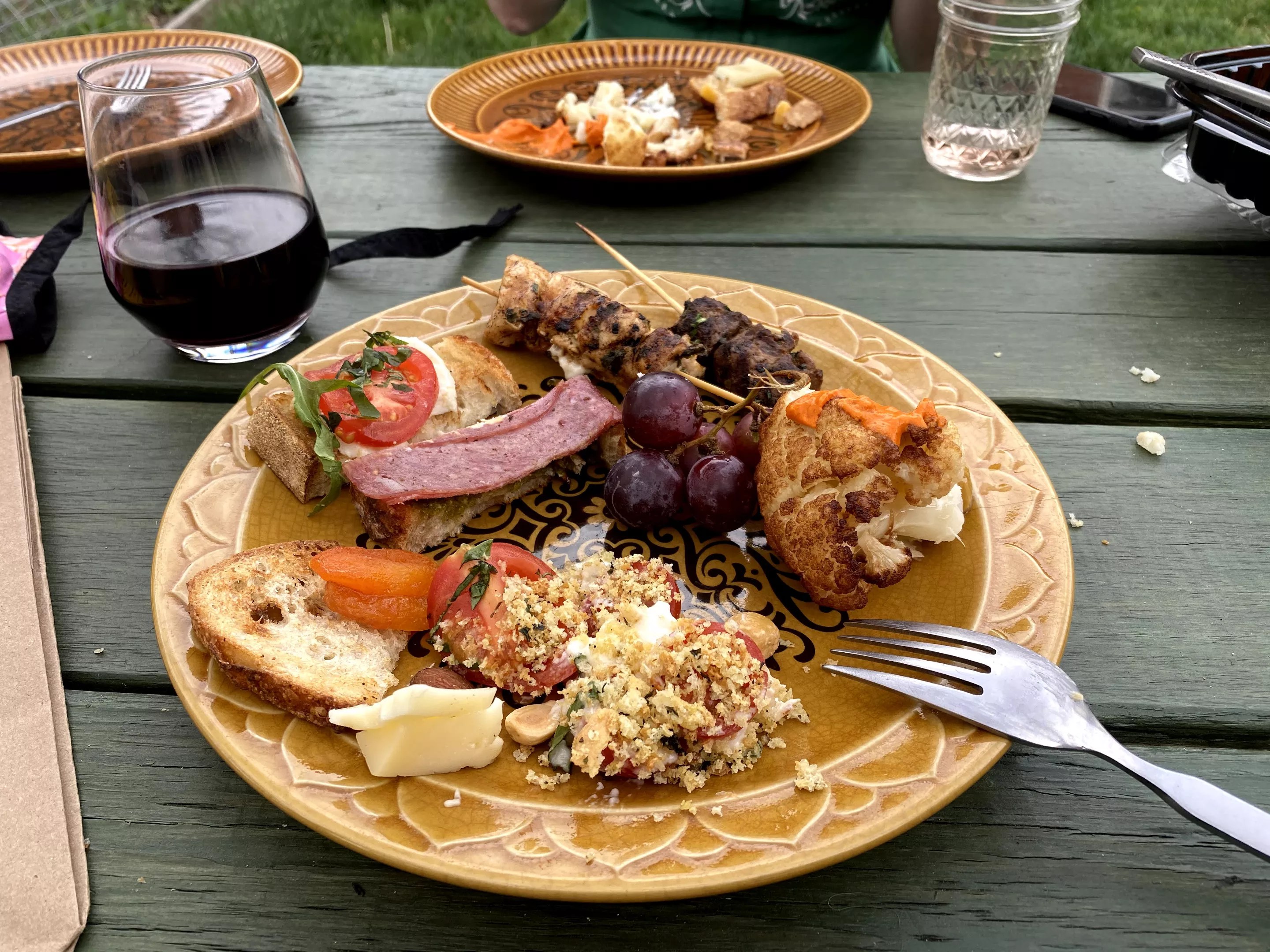 Apart from coming to a full stop on 17th Street’s hella steep hillside, picking up curbside at Postino’s LoHi location was a breeze. Just inside the door, happy packages including your name, receipt and handwritten notes with friendly messages like “Good vibes inside” sat at the ready along a table. I slipped in, grabbed mine, Tetris’d the many to-go containers into my bag, and skated up the hill toward home, where I realized that there was far more of a feast than I’d imagined as we pulled out box after box and uncapped one of the wine bar’s recommended $15 red blends to go with our feast.