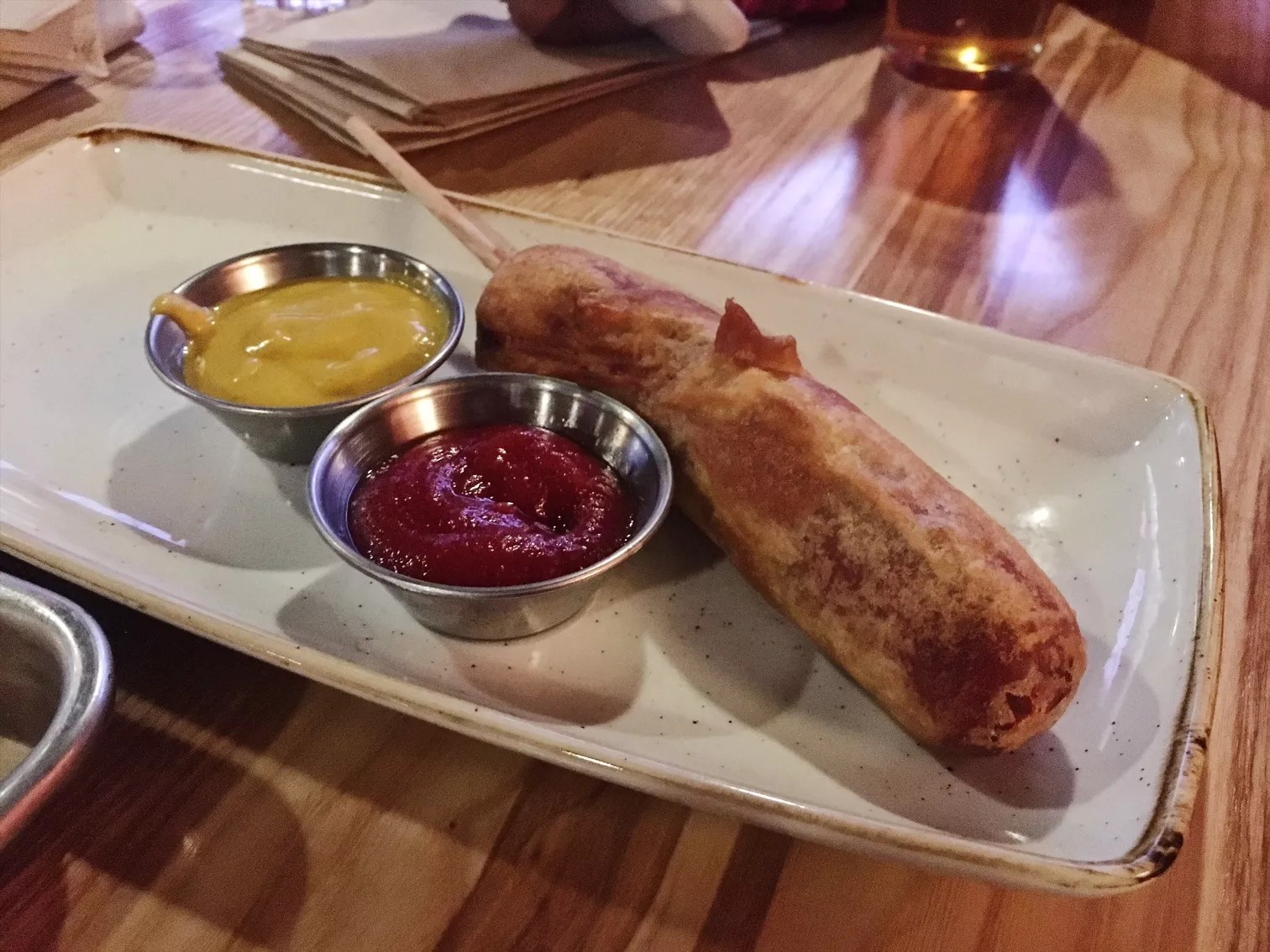 The kitchen is still finding its legs, though, because none of the rest of what we ate during happy hour would draw us back. (And while the kitchen finds its legs, this week the Campus Lounge eliminated its lunch hours, at least until spring.) The corndog was particularly disappointing, its wrapper both oddly thin and confusingly chewy – eating it was like grappling with something not meant to be ingested. And the deviled eggs, pink in hue and garnished with paprika-dusted potato chips, took on a bit of an acrid note in the finish, perhaps from too much mustard.