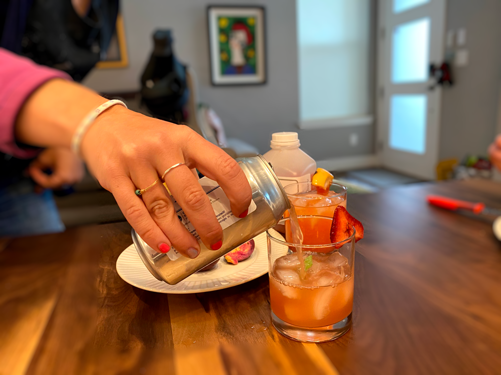 Sold on my liquor choices – the rum punch, a canned Paloma (one of my faves) and a grilled-lemon-infused City Park Sipper – the snack situation felt a bit trickier. I knew I wouldn’t be imbibing until later, so eyeing the time-sensitive pretzel bites, parmesan truffle fries and fried pickles was torture. Luckily, two Freshcraft snacks were better suited to delayed gratification: the beet-brined deviled eggs and the chicharrones.