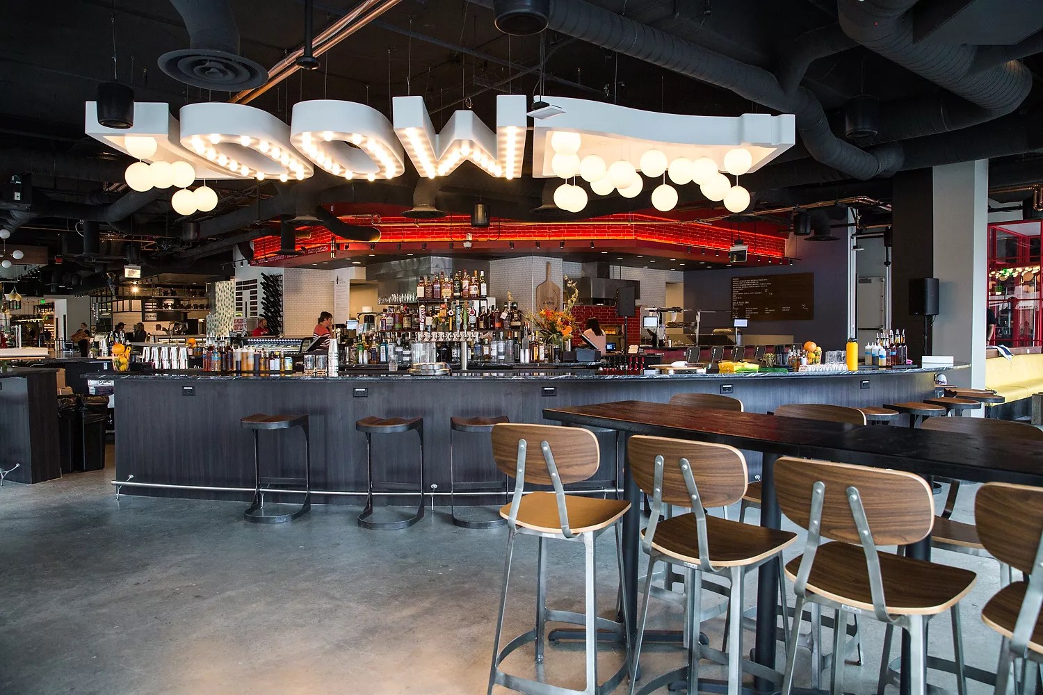 Each station has its own style and theme, courtesy of Jacqueline Bonanno, co-owner and creative director of Bonanno Concepts along with Davis Partnership Architects. Art, more tile than you can imagine, neon lights and jam-packed display shelves make the 18,000-square-foot space feel like you’re wandering through a miniature village. In addition to coffee, you can also buy gelato and bao buns from windows opening onto the Alley, and soon Engine Room, just a few doors down in the Alley, will also open, serving New York-style pizza by the slice until 3 a.m. on weekends.