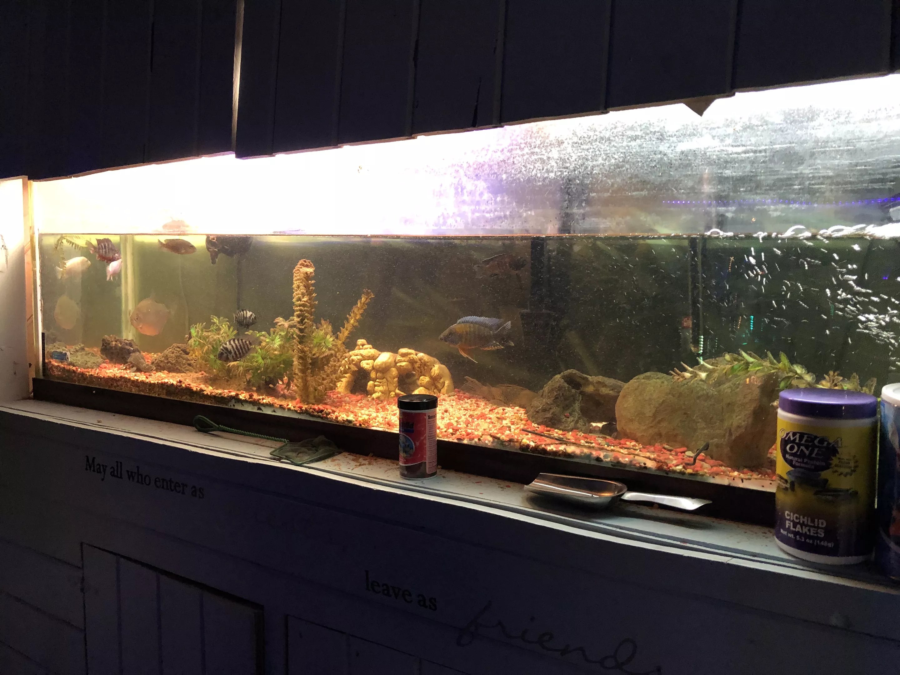 The remodel of the main barroom is mostly complete, though an aquarium against the back wall is a holdover from the previous owner. (The tank could use a little TLC, but I’m glad it’s there, since fish tanks are one of my favorite neighborhood bar features.) Two side rooms with lounge furniture and billiards, darts, giant Jenga and a few arcade games – Big Buck Hunter and a boxing game with a real punching bag – add additional seating, along with a patio hidden from street view at the back of the building.