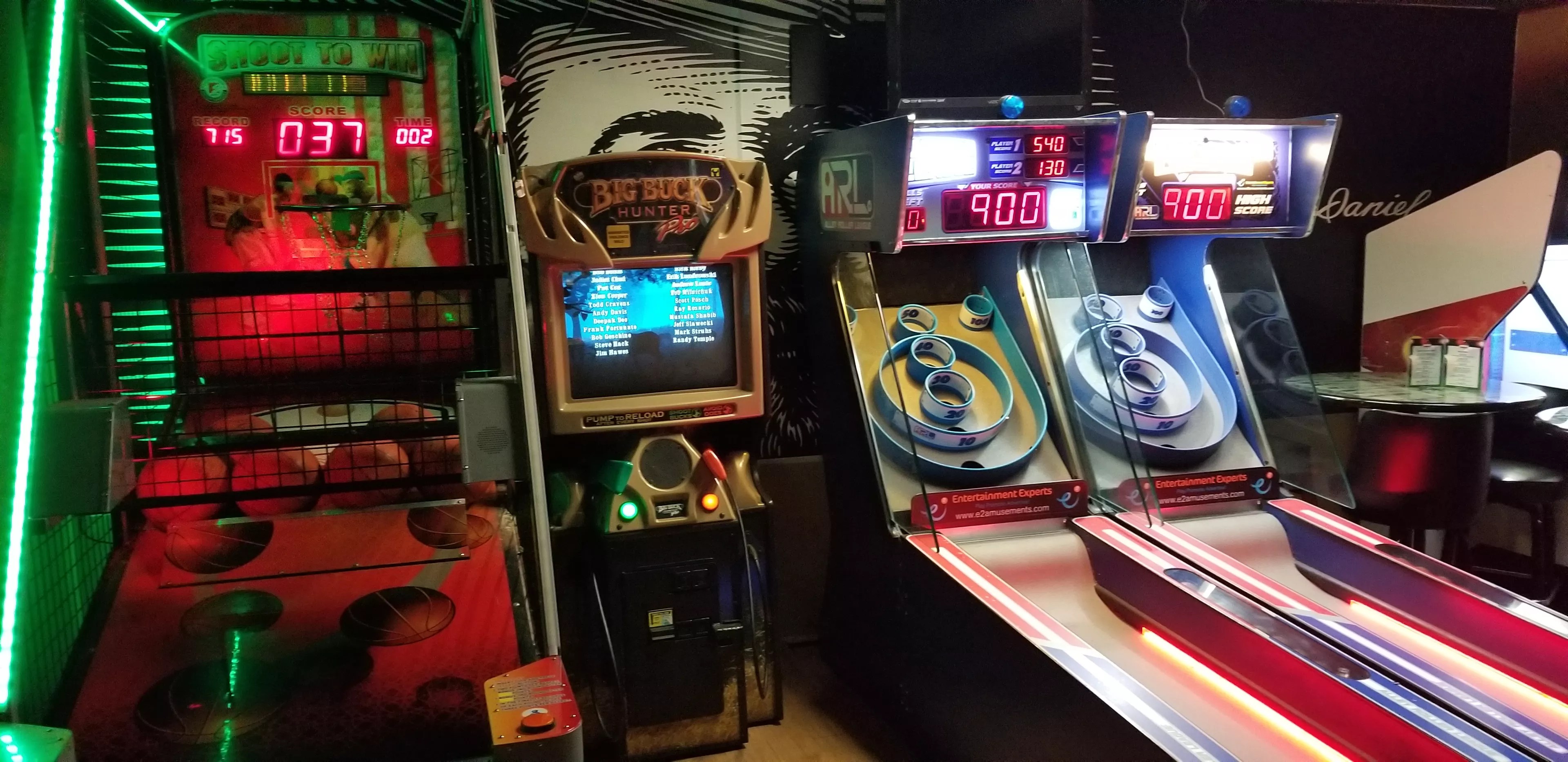 Sitting at one of the high-top tables, we had a good view of the comings and goings as well as the many forms of bar entertainment available. Near the entrance, there’s Bonus Hole and Golden Tee. On the wall at the edge of the bar, shelves are filled with a small library’s worth of books, in case you’re looking for a good read. Behind the pool tables is a small game room with some great arcade selections: Big Buck Hunter, “Shoot to Win” basketball, two Skee-Ball machines and an electronic beer pong game. There are even Skee-Ball leagues here, run by Play Mile High.