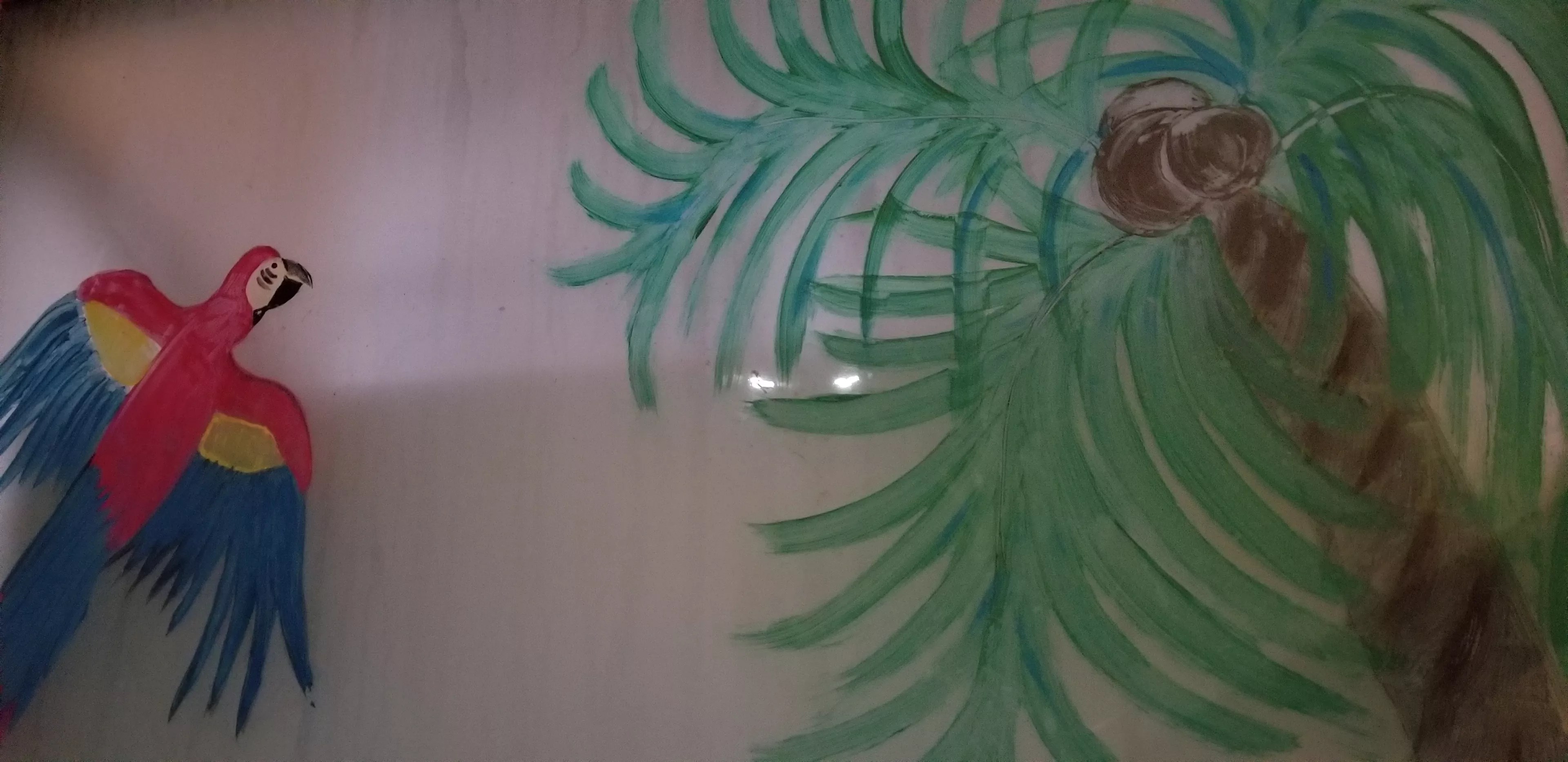 This is the mural inside of one of the bathroom stalls at Q’s. Why? Who knows?