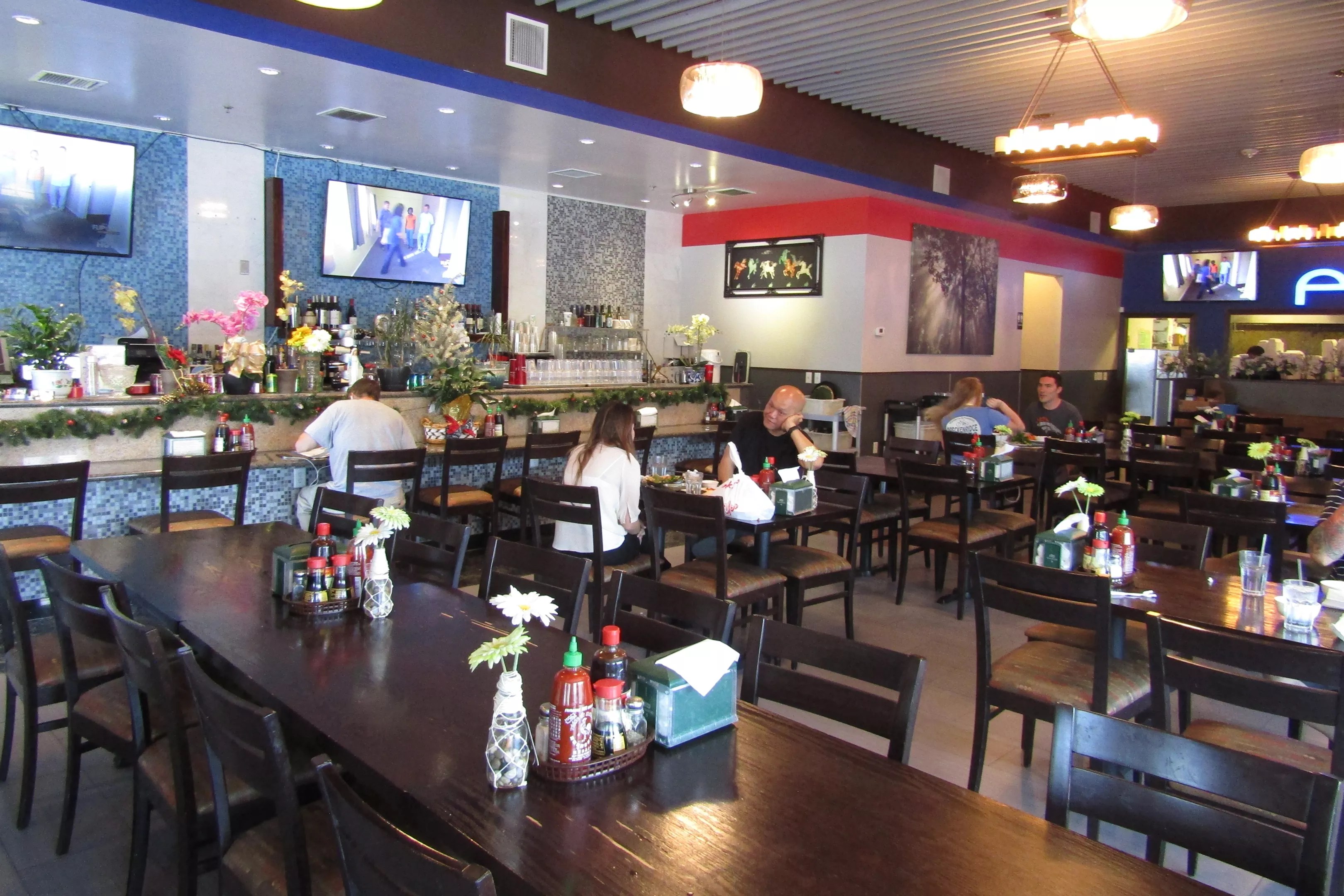 Denver Pho is decorated in dark, soothing colors, but for the sea-blue tiles at the bar. There’s a patio out front that stays shady during lunch but might get a little sweltering in the early evening hours; a few beers from the bar – or a boba smoothie – should chase away the heat.