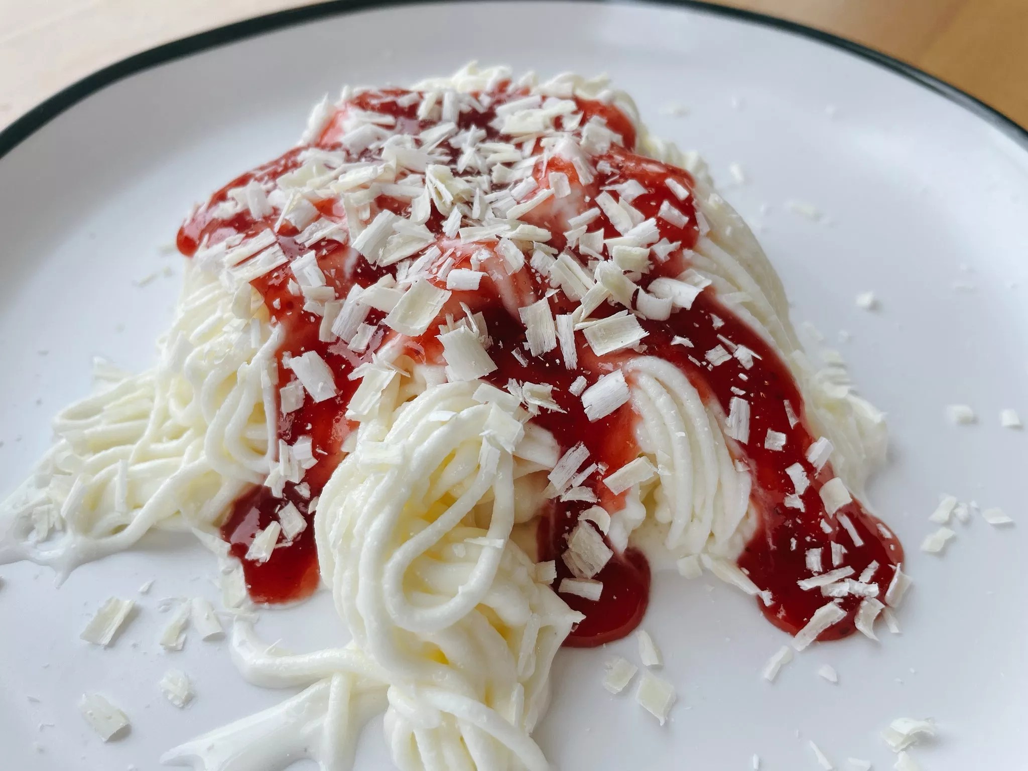 Dude, what if spaghetti was made with ice cream? At Eiskaffee, an offshoot of High Point Creamery that opened inside the 11th Avenue Hostel on Broadway in 2022, it is. Inspired by the traditional eiskaffees served in Germany, this spot specializes in combining ice cream and coffee — but there’s one secret menu item that takes the classic ice cream sundae to another level. Spaghettieis, or spaghetti ice cream, is a beloved German novelty. Here it’s made with Bavarian Cream ice cream that’s pressed through a potato ricer to create a noodle effect, then topped with strawberry sauce and shaved white chocolate to mimic Parmesan cheese. Dude.