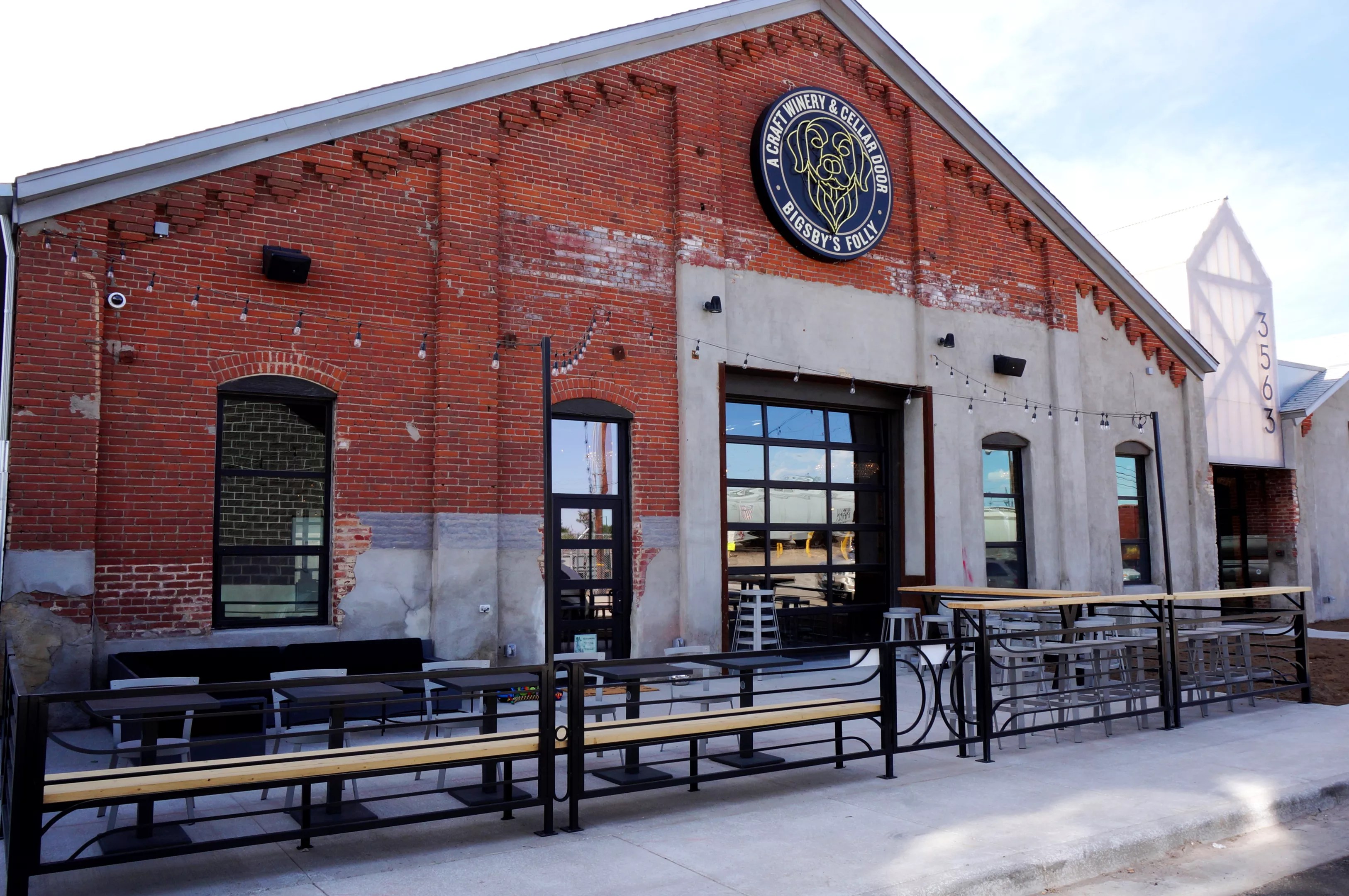 When something truly different comes along, it catches our attention. That’s the case with Bigsby’s Folly, a new winery-restaurant that opened in June. What’s so new and different about the place? Under founders Chad and Marla Yetka, it’s the first winery in Denver to take advantage of Colorado’s new vintner’s restaurant liquor license, which allows an establishment to sell food and alcoholic beverages while producing wine on site. So unlike a standard winery or brewery that only serves its own product, Bigsby’s Folly, named after the Yetkas’ late golden retriever, also serve wines from around the world, as well as a selection of craft beers and cocktails. And it does all that in a lofty, comfortable space built in a former factory.