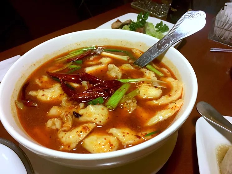Ask your server for advice at Sunflower Asian Kitchen, and she may rather forcefully steer you toward the Sichuan specialties, especially if you indicate you like spice. Heed her nudging: This strip mall restaurant offers regional specialties from across China, but it’s deft at balancing tingling Sichuan peppercorns and hot chiles in dishes like the Sichuan-style boiled fish, in which hunks of white fish swim in a trough of angry-looking broth liberally flooded with chili oil. Consider starting your meal with the tea-smoked eel, a Sichuan specialty that comprises fish marinated in and then smoked with tea and sugar. And a truly Chinese meal requires a side of vegetables; we’d go for garlic-spiked sautéed greens or the dry-fried green beans. But, really, as long as you’re working off the Chinese menu – as opposed to the American-Chinese list you might be handed when you first walk in – it’s difficult to go wrong.