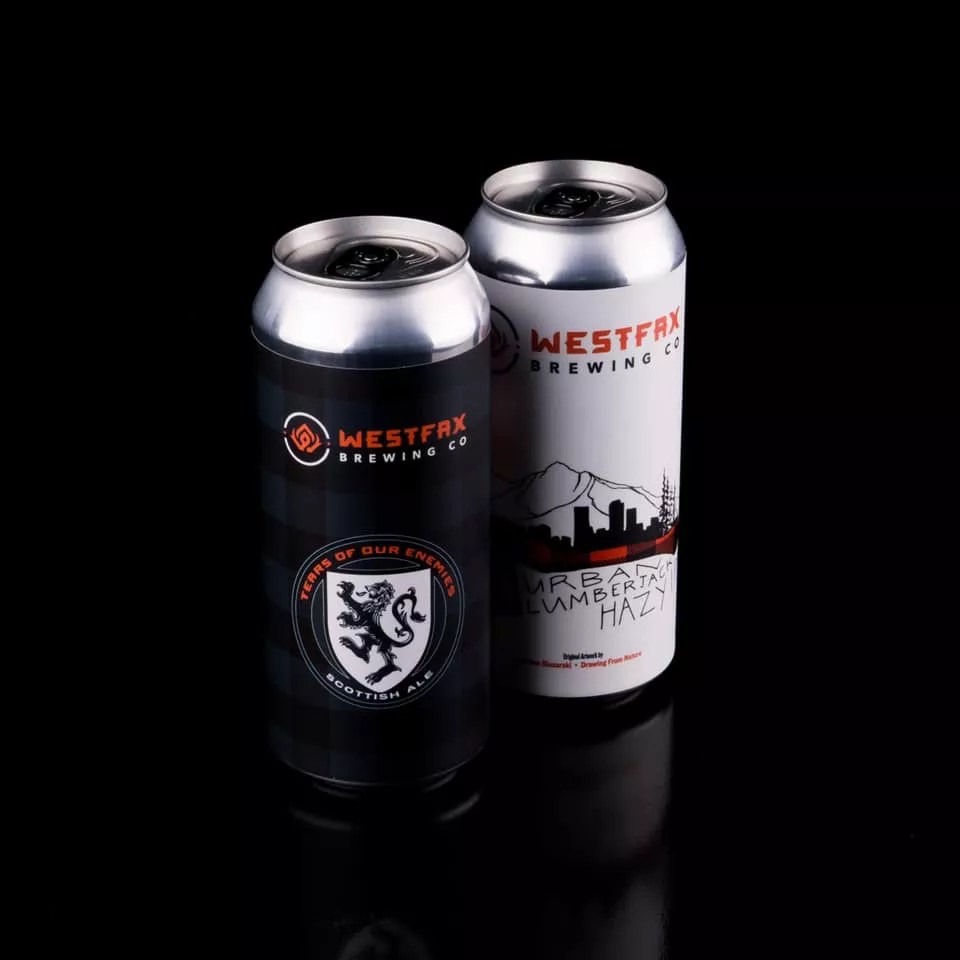 Westfax Brewing has fresh sixteen-ounce four-packs of two flagship beers, Urban Lumberjack Hazy IPA and Tears of Our Enemies Scottish Ale. The first was brewed with six hop varieties. The second is a light brown Scottish ale “with aromas of subtle fruit combined with a toasty malt character followed by flavors of caramelized sugar and toasted bread and finished with a pleasant warmth,” the brewery says.