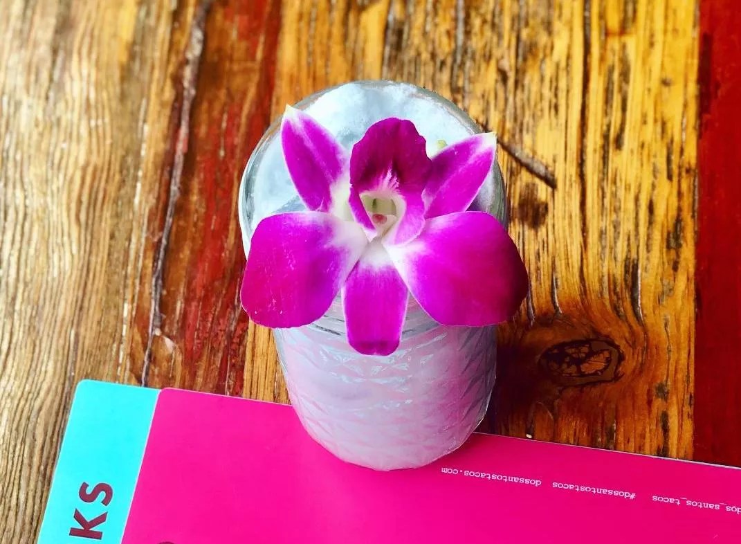 Dos Santos makes a unique Violet Coconut Cream margarita for their monthly margarita special.
