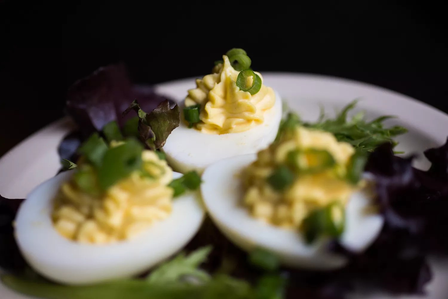 There aren’t a lot of ambivalent feelings when it comes to deviled eggs; either you love them or you don’t. For those who can’t get enough of the classic, creamy, pickle-enhanced bite of hard-boiled egg made fancy, we’ve rounded up some of our favorites, each with its own little twist – or completely flipped on its head for something unique, whether salad-inspired or made meaty with bacon. Even if you’re not a fan, these eight deviled eggs have something special that just might make a hater embrace his devilish side. Try them all now, then use them as inspiration for your own upcoming holiday cooking. Green Goddess deviled eggs at Acova in LoHi. Linnea Covington