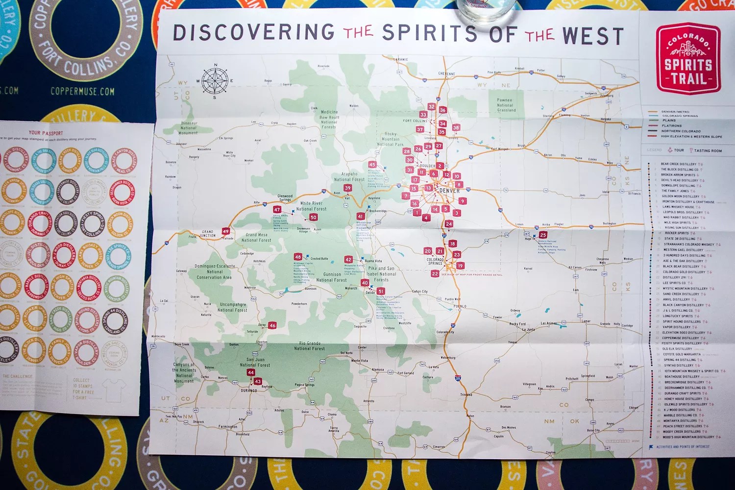 The Colorado Spirits Trail highlights distilleries across the state; this year’s map includes over sixty.