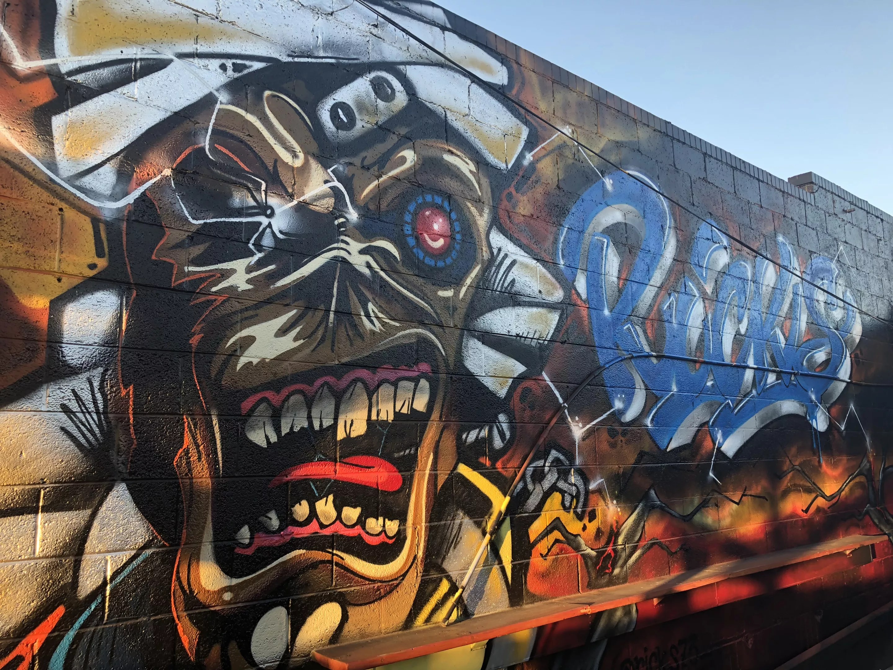 Indoor bar games get us through the winter, but games on the patio make us feel a little more sporty, as we sip a drink from one hand and toss a beanbag with the other. For ping-pong and cornhole on a maze-like patio with designated nooks and crannies for each game, visit Local 46, at 4586 Tennyson Street in the Berkeley neighborhood. There’s also a frozé machine at the outdoor bar and fire pits to keep you warm after dark. For a full-on sports experience with volleyball leagues or drop-in play, plus beer pong and cornhole, look no further than Gibby’s Big Backyard, at 1555 South Havana Street in Aurora. And Milo’s Sports Tavern, 6495 East Evans Avenue in Virginia Village, has a covered patio where you can smoke and play Skee-Ball and arcade games year-round, plus leather couches to make for luxurious patio seating – not at all like the couch on the porch of the house you rented in college. The mural on the patio at the Brutal Poodle changes monthly. Sarah McGill