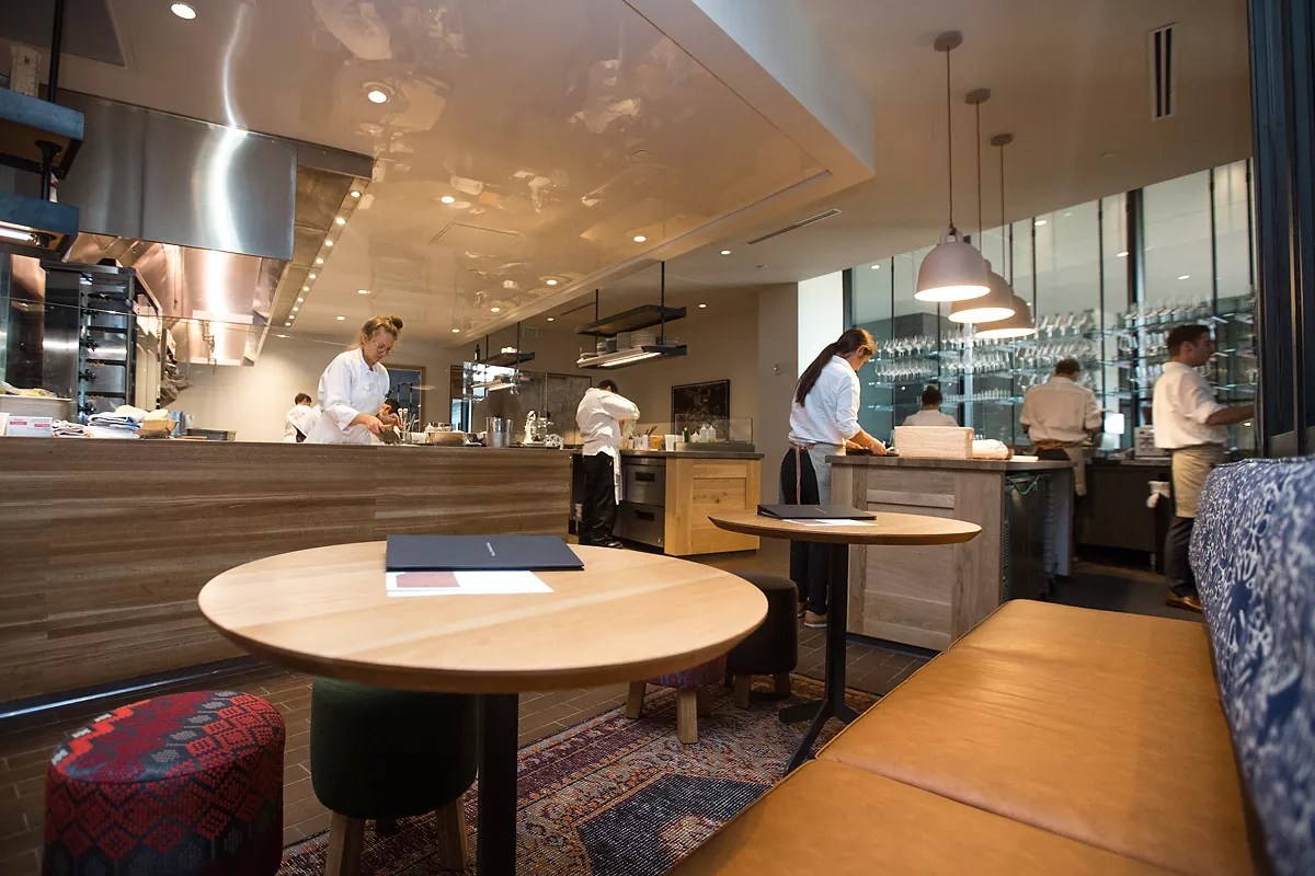 Whether you’re planning a festive night out with friends, an intimate experience for two or a VIP outing for you and your entourage, there’s a perfect table waiting for you among Denver’s hip, hot and posh restaurants. Plan ahead, reserve the table with a view or the one with the special service, then wow your dinner guests with your knowledge of the city’s dining scene. Here are ten of the best tables at dining rooms in Denver and Boulder. Every Wednesday, the prep island in the Bindery’s kitchen (behind this pasta-rolling cook) turns into a dinner table for four lucky guests. Danielle Lirette