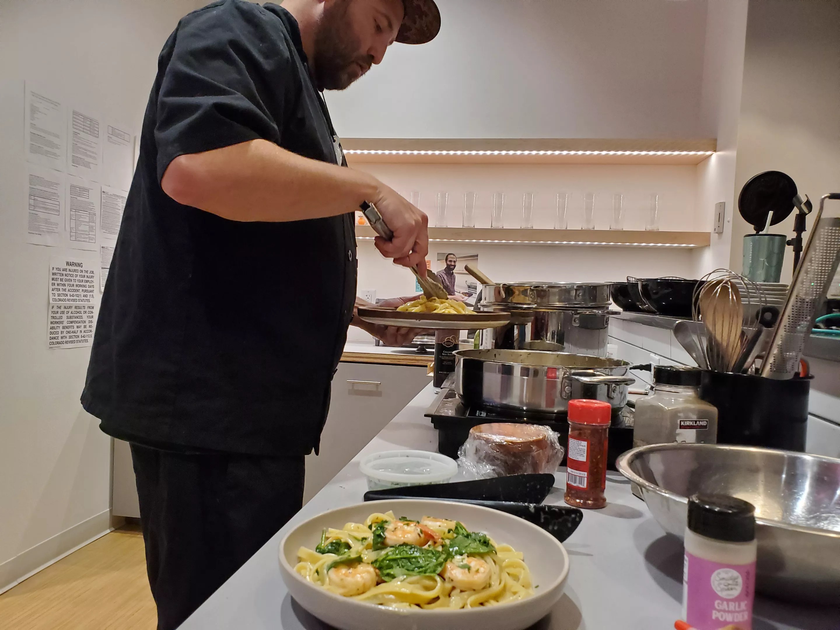 Farina recently stopped by the Westword office to record an upcoming episode of City Cast Denver. He also gave a demo of his cooking skills, whipping up a buttery shrimp pasta, which some participants chose to dose with infused oil while others abstained — but everyone enjoyed the meal. That’s exactly the kind of experience he enjoys being able to offer, because it’s an inclusive, no-pressure way for people to share a meal together; he says this approach is great for special occasions, like bachelorette parties. “You might have one or two people at the event who are pregnant or don’t consume marijuana, and they can still participate. They feel really comfortable knowing that the dishes come out not infused,” he explains.