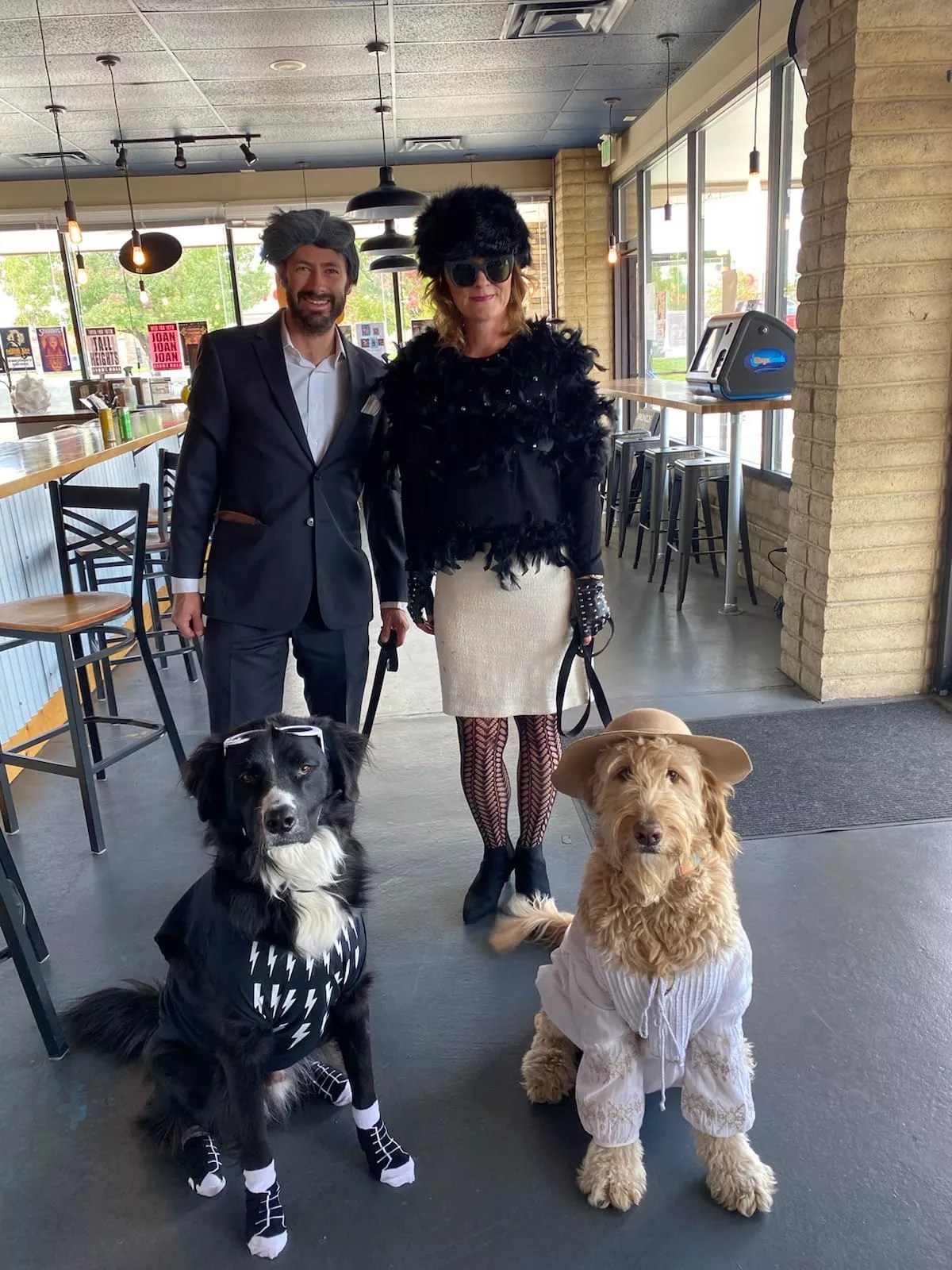 A pair of patrons dressed up, dogs in tow, as the cast of Schitt’s Creek, for a costume contest.