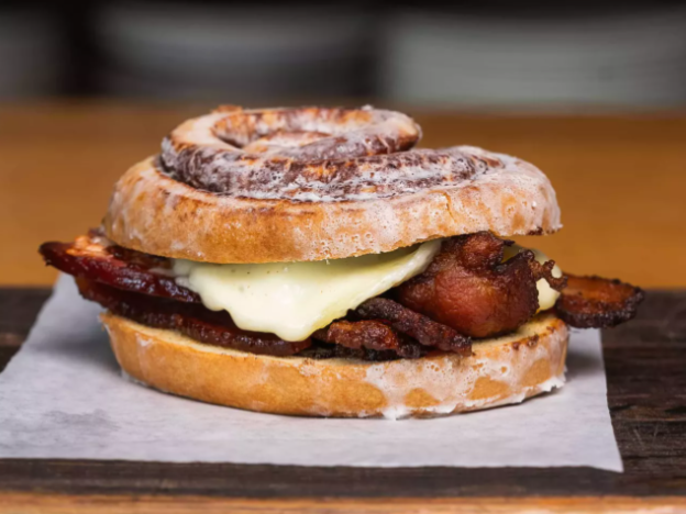 The cinnamon doughnut breakfast-style sandwich from Electric Donut Factory.