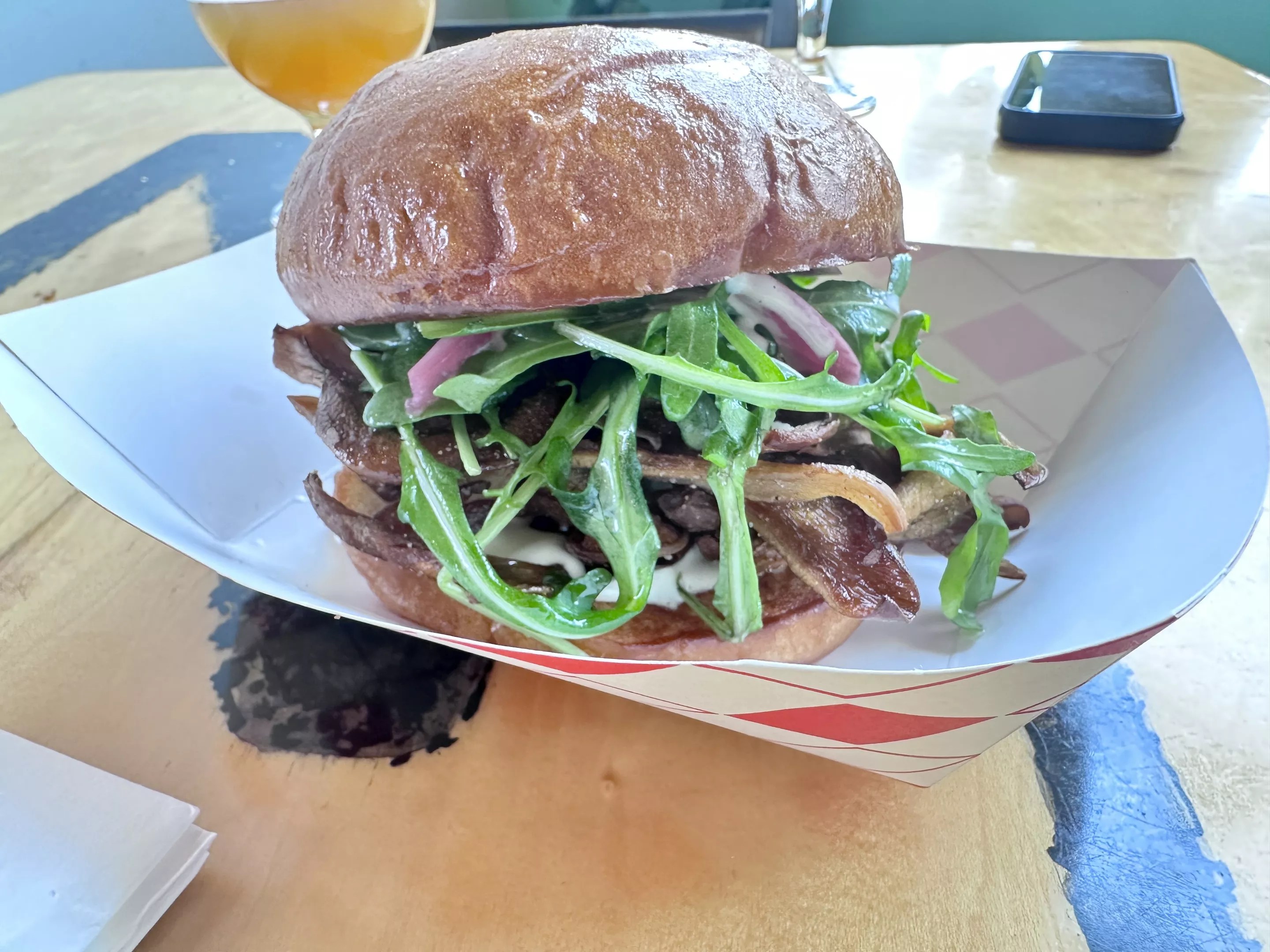 To access more customers, the team started reaching out to breweries they liked and began gaining traction thanks in large part to their smashburgers. Not to be overlooked, though, is the vegetarian mushroom sandwich, which sings with earthy flavors and shows off Mason and Clay’s fine-dining experience. They use local purveyor Jacob’s Mushrooms and top the sandwich with arugula, aioli and pickled onions.