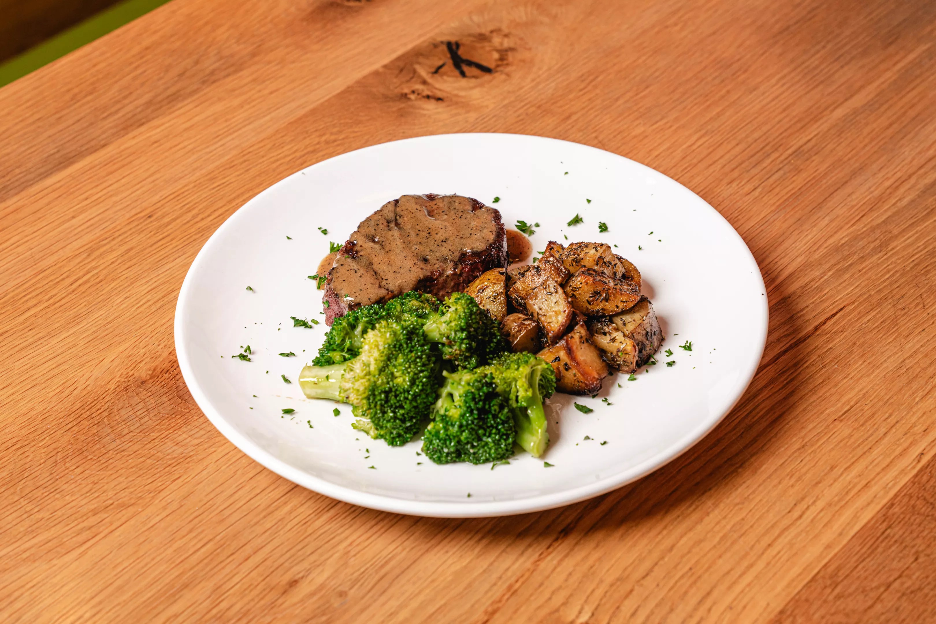 Meanwhile, around thirty dishes are entirely new to fans of either brand. Of them, de Gruyter recommends the Beyond Steak filet topped with zesty chimichurri and served with sides of brown rice and herb-roasted potatoes. Other protein plates feature citrus-marinated chik’n, pan-seared “salmon” made from soy, and crispy blocks of seasoned tofu.