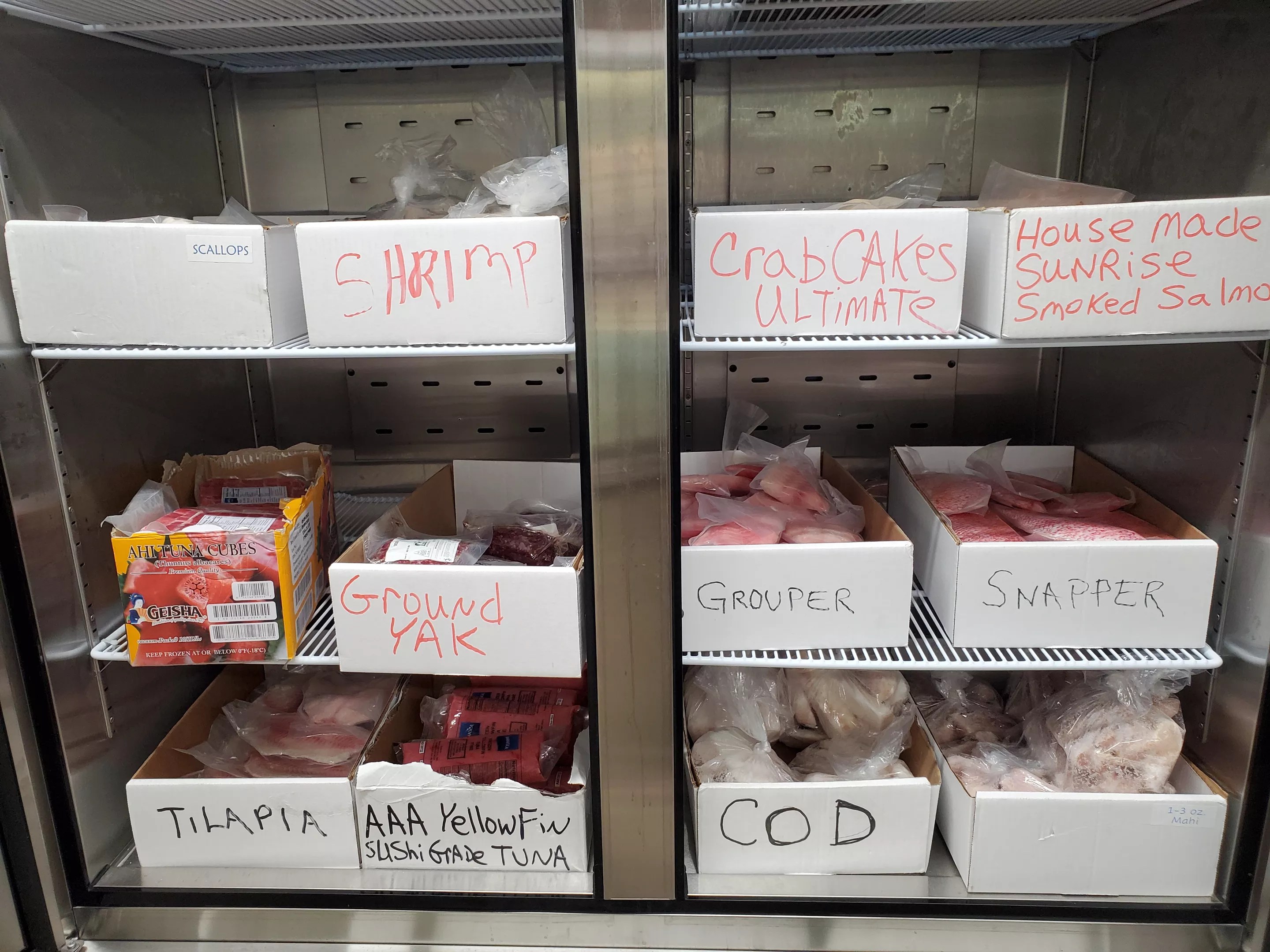 Smoked salmon is sold alongside ground yak at Town & Country.