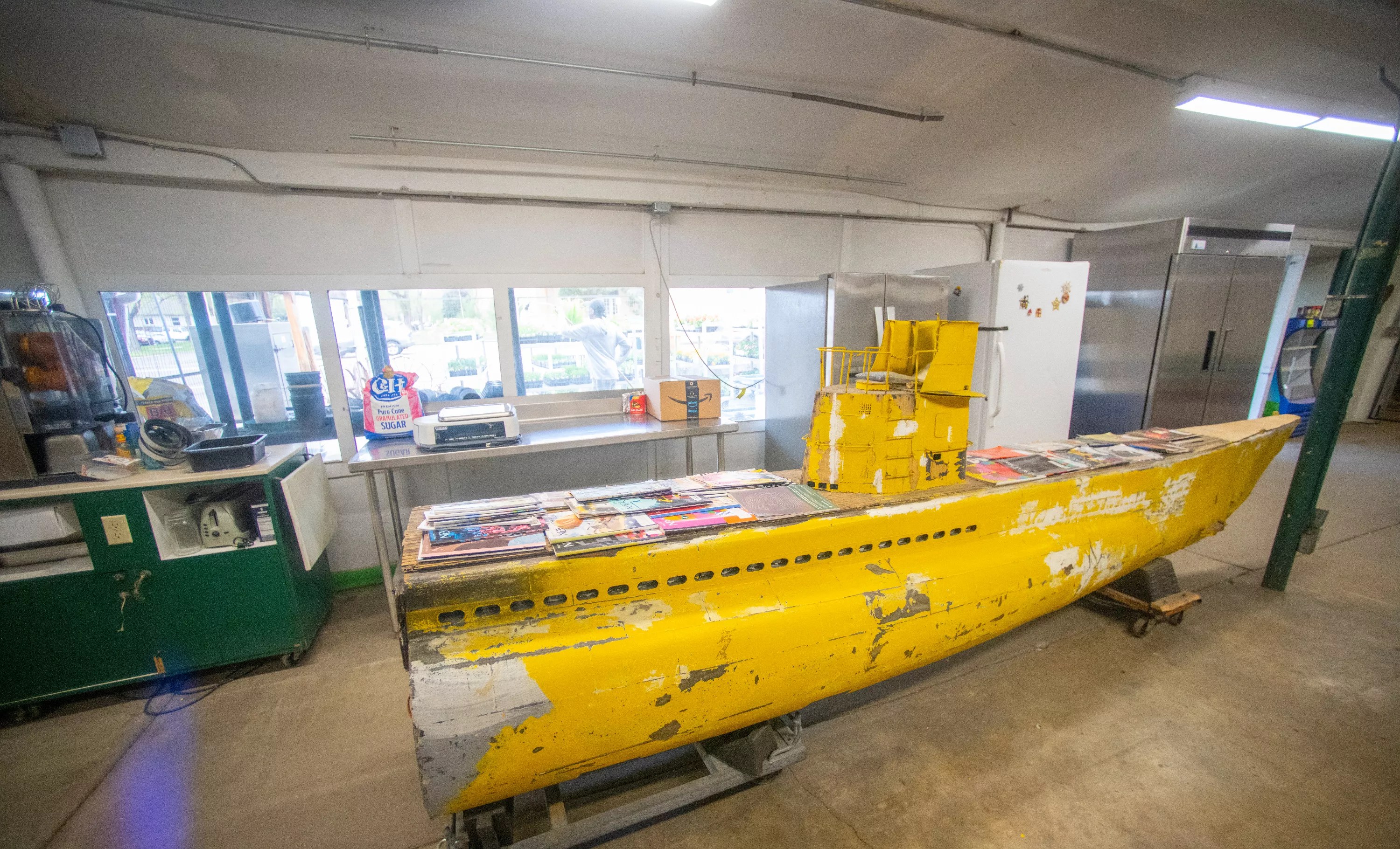 The yellow submarine may move outside the store….some day.