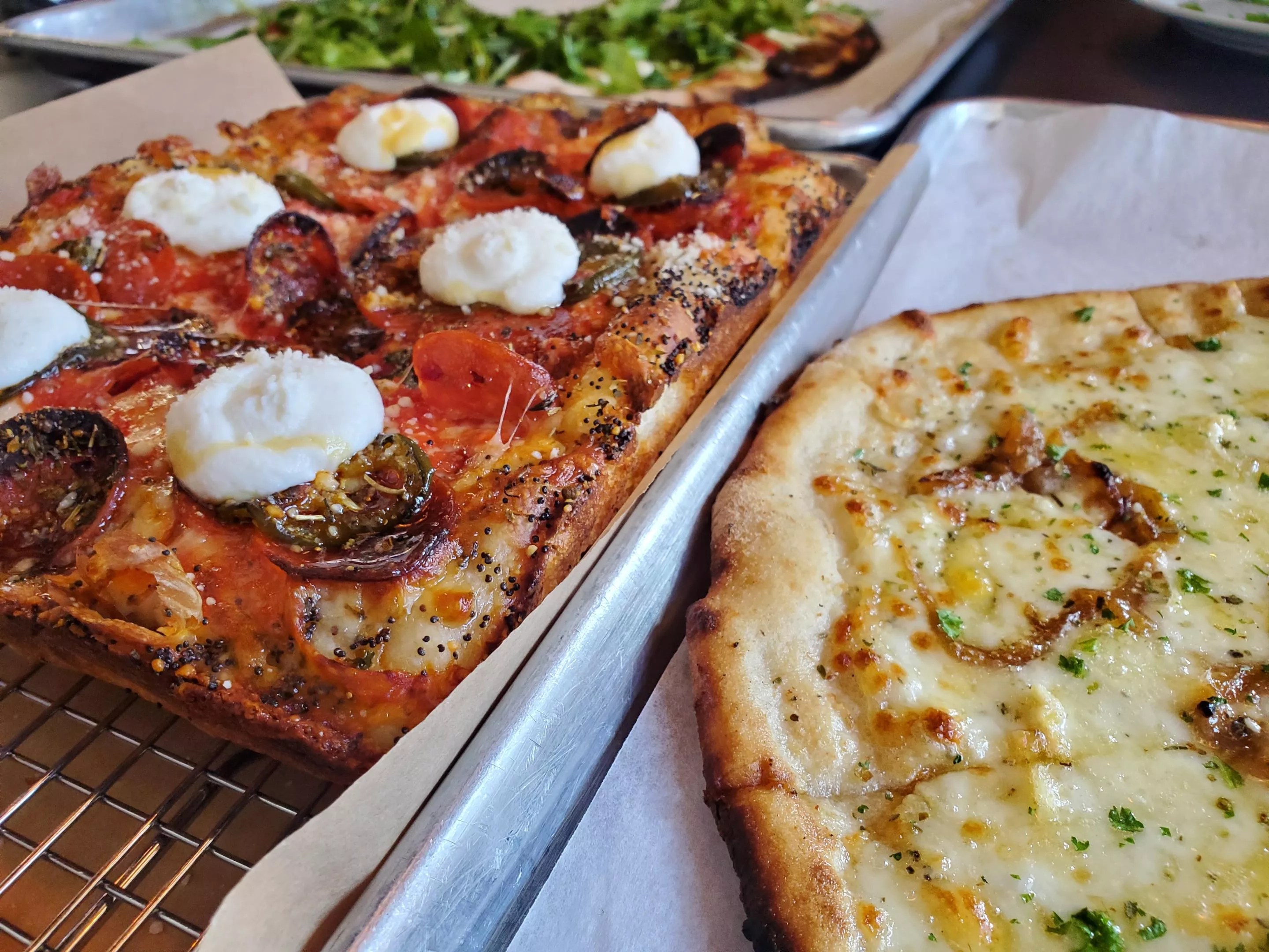 There was a lot of pizza consumed over the past several weeks as we worked on our ultimate guide to the best pizza in Denver. Last year, White Pie in Uptown was our Best of Denver pick for Best Pizzeria, and we recently did a deep dive into what makes its wood-fired New Haven-inspired pies so good. When we visited in January, the Fromage a Trois, with roasted garlic crème fraîche, Brie, mozzarella, pecorino and carmelized onions, remained a favorite, but we were also impressed with a newer addition to the menu — thicker, rectangular Sicilian-style pizzas.