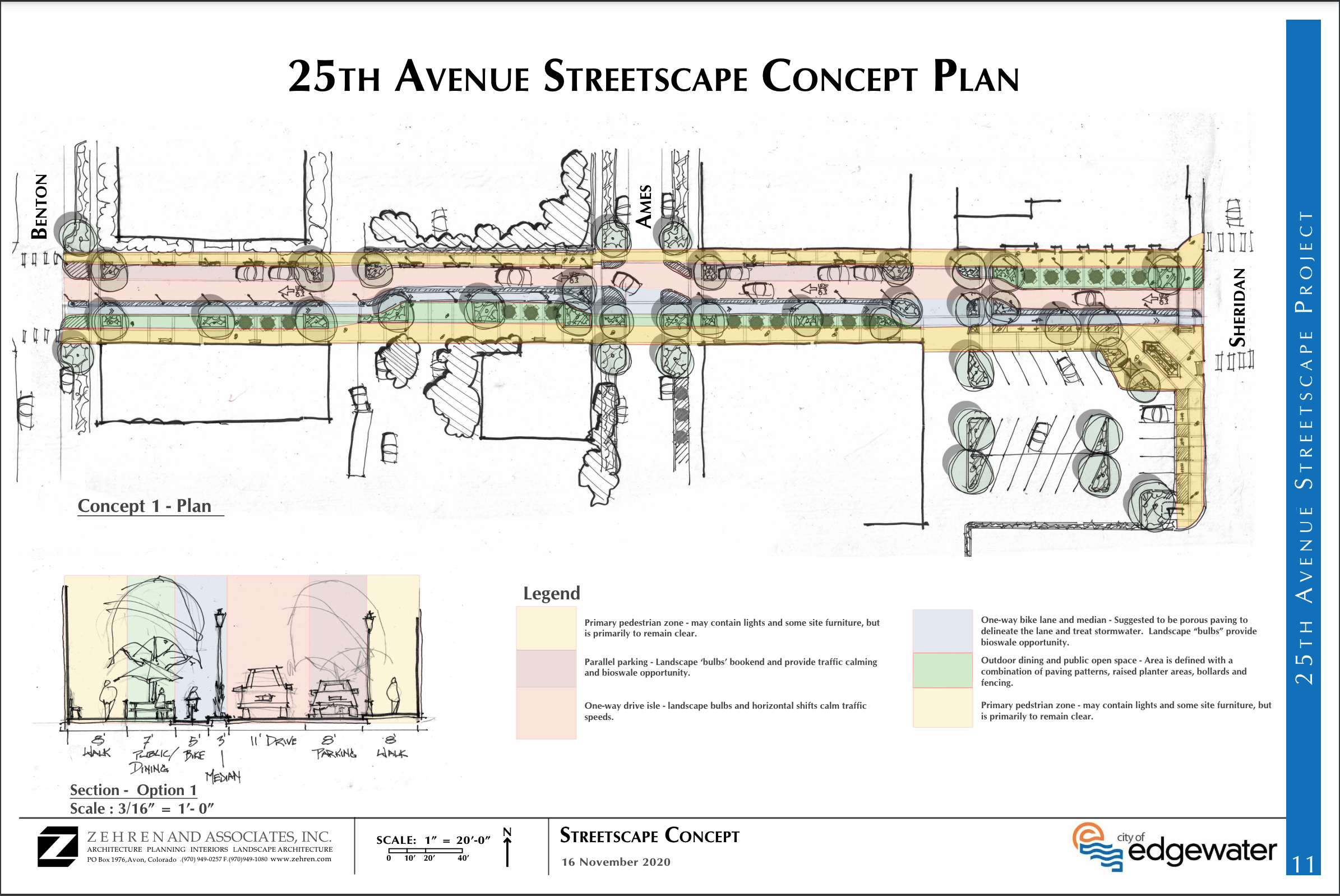 To better cater to the town’s walking culture, the City of Edgewater undertook and approved a Traffic Calming and Mobility Plan in 2019, which identified much-needed changes to the 25th Avenue corridor to better support pedestrians and bicycle users.