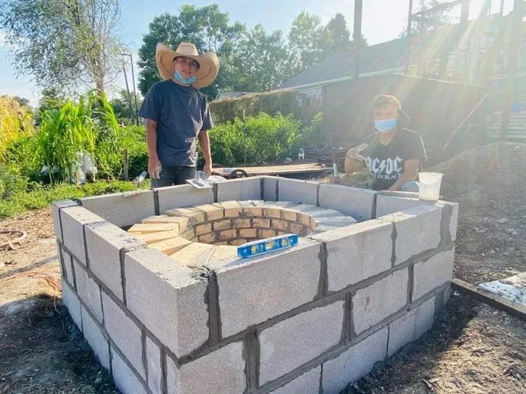 Avila and his crew then got to work building the hoyo, purchasing bricks and cement to line the pit — which at about three feet deep is shallow compared to the hoyos at indoor/outdoor restaurants in Hidalgo. A square concrete pad with a wooden frame surrounds the pit at ground level, allowing the cooks to cover the hole with tarps and dirt once the meat and the pot of consomé are in place.