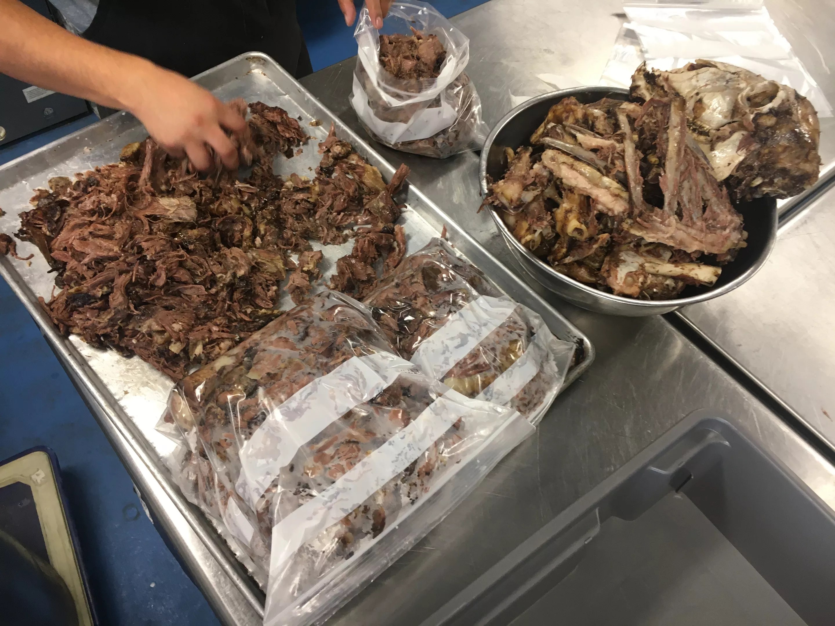 The finished barbacoa is shredded and portioned in Re:Vision’s commercial kitchen.