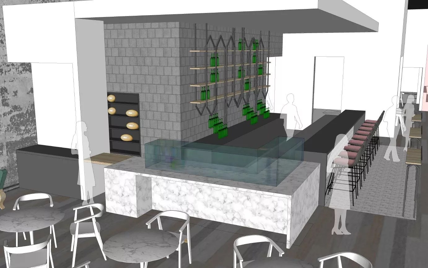 The space itself will be divided into three spaces: a sunny area near the front windows that Kaplan says will have “casual energy,” a central bar area that will be the focal point, and a more intimate dining area at the back. At the bar, cold cases that will display pastries during the day will be converted into a raw bar for dinner service. At the bar, grain-based spirits will take precedence as part of Emmerson’s craft-cocktail slate.
