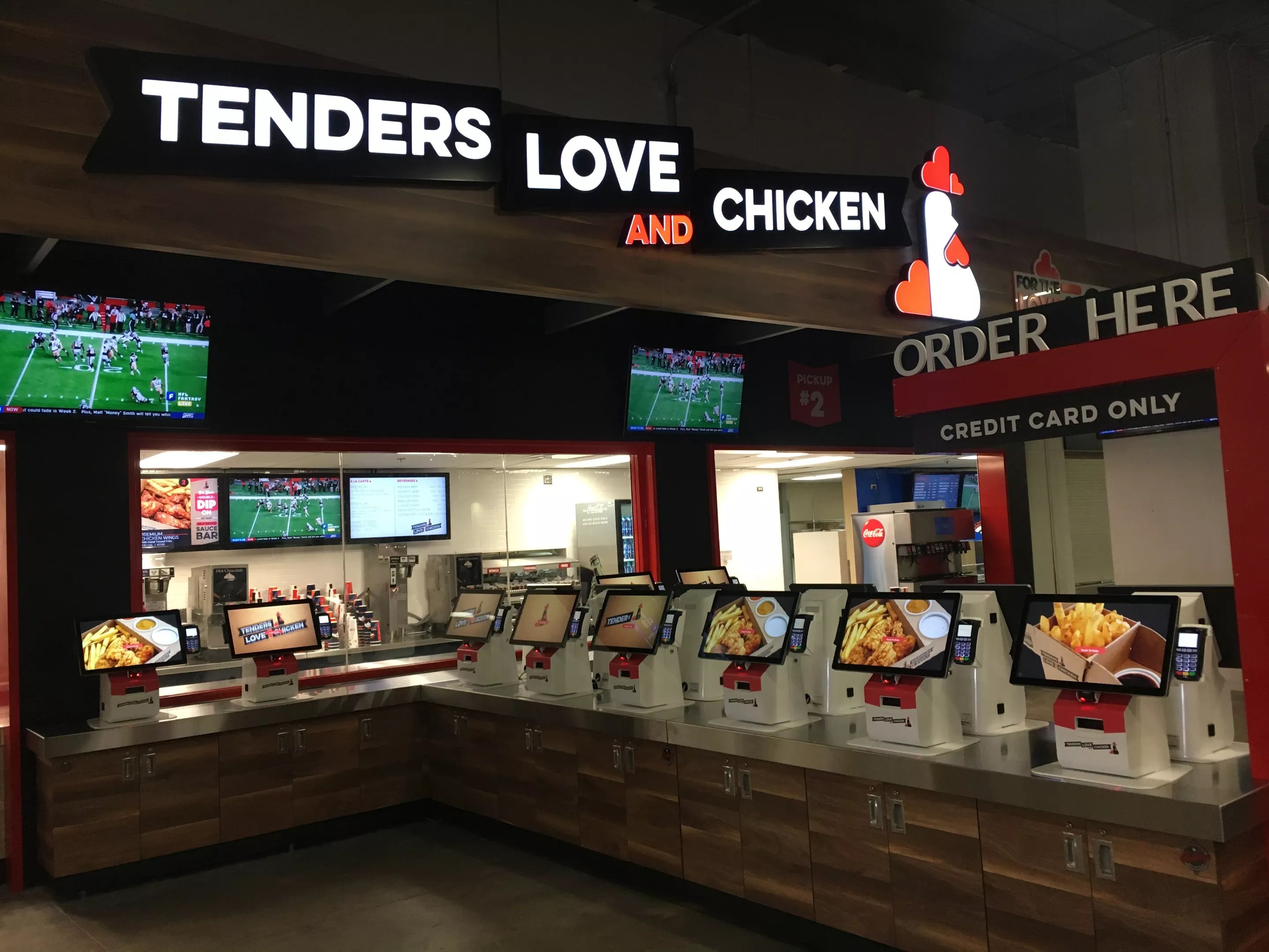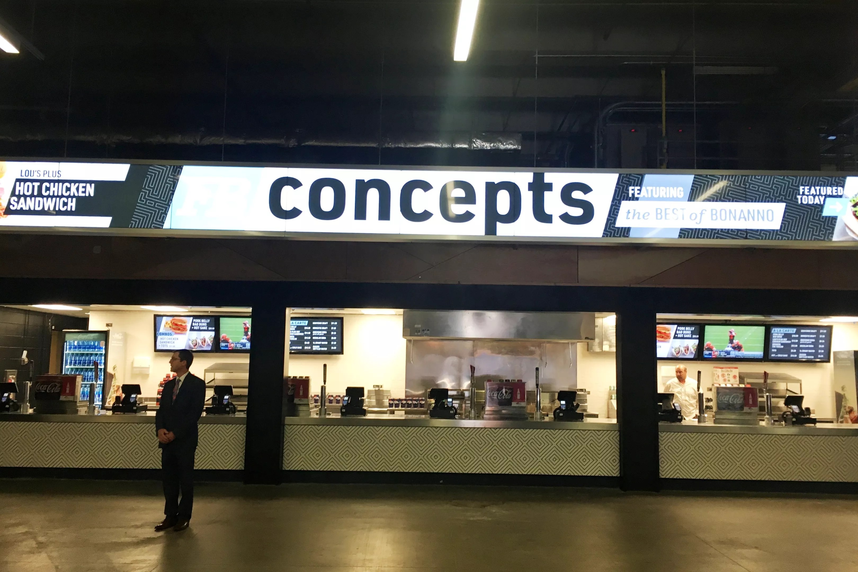 This option created by the Aramark team serves fried chicken tenders with an array of ten different sauces, all available at a pump-your-own station after you pay. More impressive than the breaded bird, though, is the row of touch screens that allow you to order and pay yourself, hopefully speeding up the lines. Grab your food, which could include ranch-dusted fries, fill your own drink at a high-tech soda station calibrated for the perfect pour, and stop for sauce before heading back to your seat. There are two TLC counters – the big one at section 122, and a smaller one at section 103 with traditional human cashiers in case you’d rather pay cash.